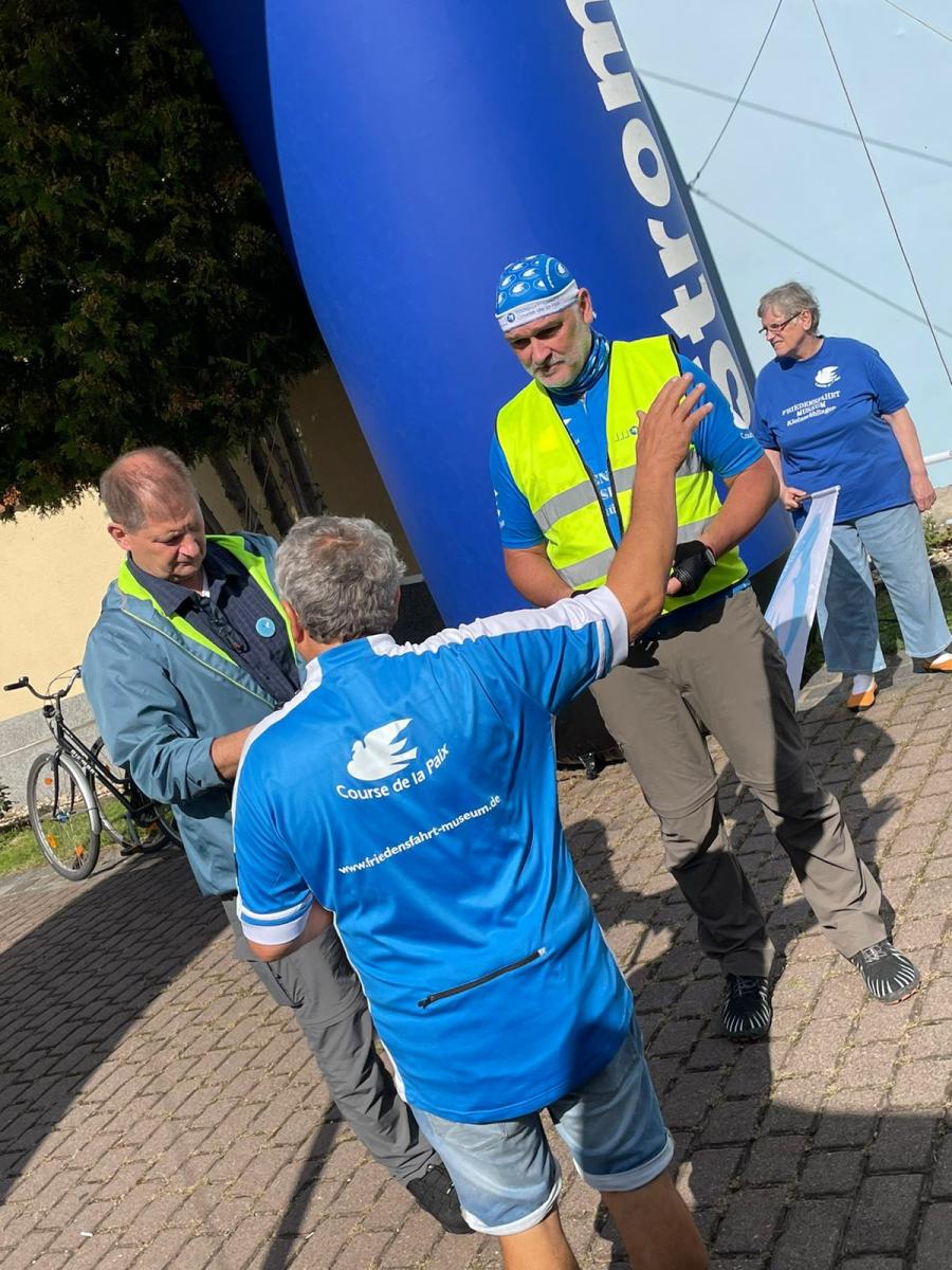 Sie war einfach nur schön und gelungen, die 1. Friedensspazierfahrt durch die Gemeinde Bördeland. Bei strahlendem Sonnenschein trafen sich am vergangenen Sonntag, über 70 Teilnehmer vor dem Radsportmuseum „Course de la Paix“ in Kleinmühlingen. Nach einem kleinen Frühstück ging es dann auf die 25 Kilometer lange Strecke durch die Gemeinde Bördeland. Wie es schon immer Tradition bei der großen Friedensfahrt war, stiegen auch am Start in Kleinmühlingen, Friedenstauben in den Himmel und die Fanfare der ehemaligen Radfernfahrt erklang zur Freude der vielen Gäste. Umwerfend war die Teilnahme der Radsportler aus allen Himmelsrichtungen des Landes. Bördeland, Welsleben , Calbe /Saale, Bernburg waren die näheren Heimatorte der Teilnehmer, aber auch aus Leipzig, Zwenkau ,Bad Doberan und Dresden, waren Sportfreunde angereist um an dieser Tour teilzunehmen. Abseits der großen Straßen ging es dann auf gut ausgebauten Landschaftswegen durch die Börde vorbei an Erntefeldern und die kleinen Gemeinden des Bördelandes. Hatte der sehr rührige Tour-Leiter Uwe Schlegel aus Bernburg anderthalb  Stunden für den Rundkurs veranschlagt, so trafen schon nach einer Stunde und vierundzwanzig Minuten das ganze Fahrerfeld wieder in Kleinmühlingen vor dem Radsportmuseum ein. Dort warteten schon Bockwurst, Kuchen und diverse Getränke auf die „erschöpften“ Radfahrer. Der selbstgebackene Kuchen von Frau Gudrun Schäfer vom Friedensfahrtmuseum ging weg wie die berühmten warmen Semmeln und die wunderschöne Radsportveranstaltung endete dann am frühen Nachmittag. Es sei noch bemerkt, das allen Organisatoren ein herzliches Danke ausgesprochen werden muss, die mit viel Herzblut und Hingabe diese Veranstaltung vorbereitet und durchgeführt haben. Ach so, niemand kam zu Fall und Pannen gab es auch nicht.