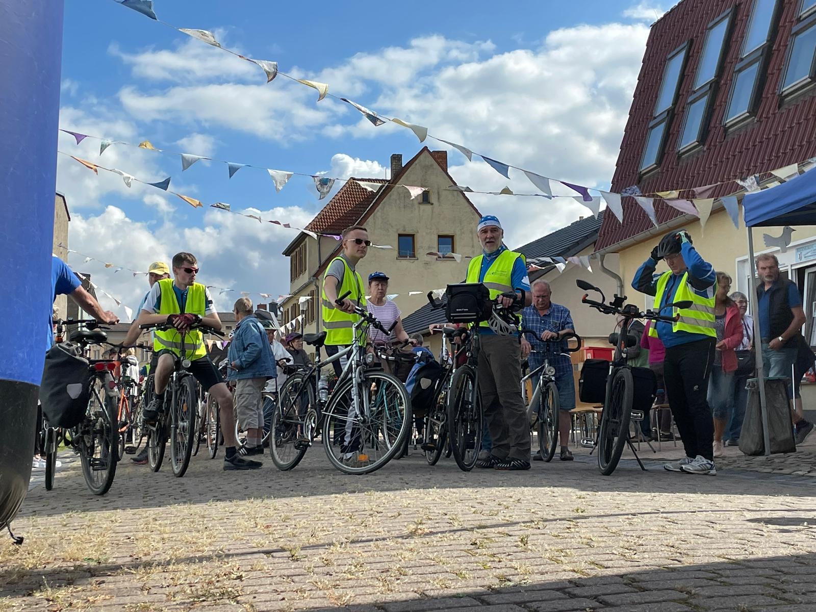 Sie war einfach nur schön und gelungen, die 1. Friedensspazierfahrt durch die Gemeinde Bördeland. Bei strahlendem Sonnenschein trafen sich am vergangenen Sonntag, über 70 Teilnehmer vor dem Radsportmuseum „Course de la Paix“ in Kleinmühlingen. Nach einem kleinen Frühstück ging es dann auf die 25 Kilometer lange Strecke durch die Gemeinde Bördeland. Wie es schon immer Tradition bei der großen Friedensfahrt war, stiegen auch am Start in Kleinmühlingen, Friedenstauben in den Himmel und die Fanfare der ehemaligen Radfernfahrt erklang zur Freude der vielen Gäste. Umwerfend war die Teilnahme der Radsportler aus allen Himmelsrichtungen des Landes. Bördeland, Welsleben , Calbe /Saale, Bernburg waren die näheren Heimatorte der Teilnehmer, aber auch aus Leipzig, Zwenkau ,Bad Doberan und Dresden, waren Sportfreunde angereist um an dieser Tour teilzunehmen. Abseits der großen Straßen ging es dann auf gut ausgebauten Landschaftswegen durch die Börde vorbei an Erntefeldern und die kleinen Gemeinden des Bördelandes. Hatte der sehr rührige Tour-Leiter Uwe Schlegel aus Bernburg anderthalb  Stunden für den Rundkurs veranschlagt, so trafen schon nach einer Stunde und vierundzwanzig Minuten das ganze Fahrerfeld wieder in Kleinmühlingen vor dem Radsportmuseum ein. Dort warteten schon Bockwurst, Kuchen und diverse Getränke auf die „erschöpften“ Radfahrer. Der selbstgebackene Kuchen von Frau Gudrun Schäfer vom Friedensfahrtmuseum ging weg wie die berühmten warmen Semmeln und die wunderschöne Radsportveranstaltung endete dann am frühen Nachmittag. Es sei noch bemerkt, das allen Organisatoren ein herzliches Danke ausgesprochen werden muss, die mit viel Herzblut und Hingabe diese Veranstaltung vorbereitet und durchgeführt haben. Ach so, niemand kam zu Fall und Pannen gab es auch nicht.