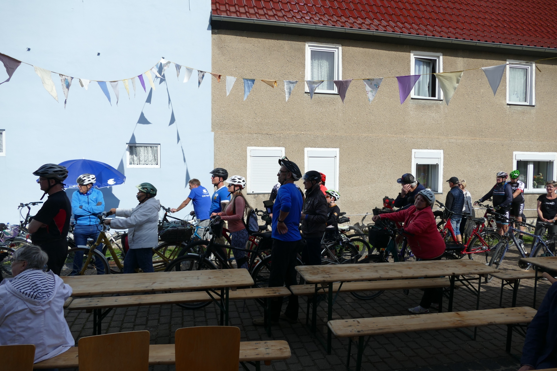 Sie war einfach nur schön und gelungen, die 1. Friedensspazierfahrt durch die Gemeinde Bördeland. Bei strahlendem Sonnenschein trafen sich am vergangenen Sonntag, über 70 Teilnehmer vor dem Radsportmuseum „Course de la Paix“ in Kleinmühlingen. Nach einem kleinen Frühstück ging es dann auf die 25 Kilometer lange Strecke durch die Gemeinde Bördeland. Wie es schon immer Tradition bei der großen Friedensfahrt war, stiegen auch am Start in Kleinmühlingen, Friedenstauben in den Himmel und die Fanfare der ehemaligen Radfernfahrt erklang zur Freude der vielen Gäste. Umwerfend war die Teilnahme der Radsportler aus allen Himmelsrichtungen des Landes. Bördeland, Welsleben , Calbe /Saale, Bernburg waren die näheren Heimatorte der Teilnehmer, aber auch aus Leipzig, Zwenkau ,Bad Doberan und Dresden, waren Sportfreunde angereist um an dieser Tour teilzunehmen. Abseits der großen Straßen ging es dann auf gut ausgebauten Landschaftswegen durch die Börde vorbei an Erntefeldern und die kleinen Gemeinden des Bördelandes. Hatte der sehr rührige Tour-Leiter Uwe Schlegel aus Bernburg anderthalb  Stunden für den Rundkurs veranschlagt, so trafen schon nach einer Stunde und vierundzwanzig Minuten das ganze Fahrerfeld wieder in Kleinmühlingen vor dem Radsportmuseum ein. Dort warteten schon Bockwurst, Kuchen und diverse Getränke auf die „erschöpften“ Radfahrer. Der selbstgebackene Kuchen von Frau Gudrun Schäfer vom Friedensfahrtmuseum ging weg wie die berühmten warmen Semmeln und die wunderschöne Radsportveranstaltung endete dann am frühen Nachmittag. Es sei noch bemerkt, das allen Organisatoren ein herzliches Danke ausgesprochen werden muss, die mit viel Herzblut und Hingabe diese Veranstaltung vorbereitet und durchgeführt haben. Ach so, niemand kam zu Fall und Pannen gab es auch nicht.
