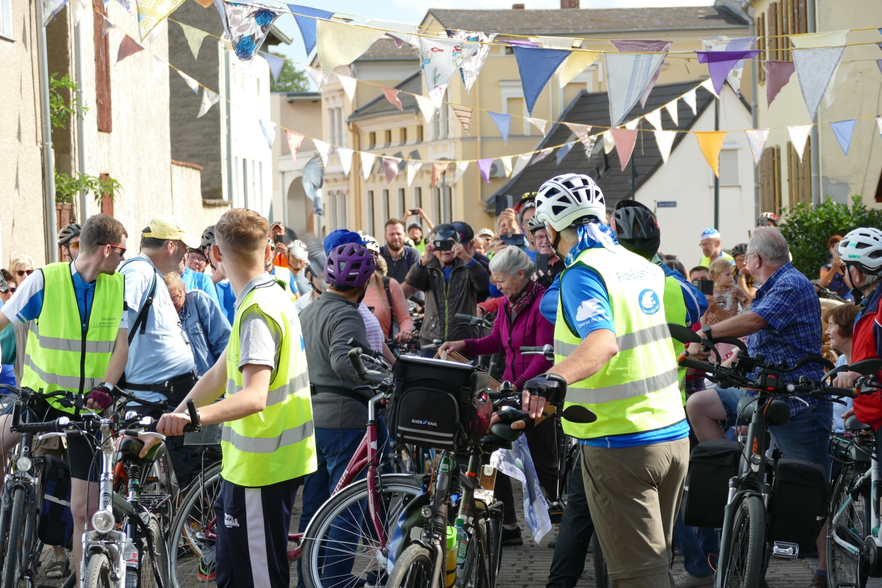 Sie war einfach nur schön und gelungen, die 1. Friedensspazierfahrt durch die Gemeinde Bördeland. Bei strahlendem Sonnenschein trafen sich am vergangenen Sonntag, über 70 Teilnehmer vor dem Radsportmuseum „Course de la Paix“ in Kleinmühlingen. Nach einem kleinen Frühstück ging es dann auf die 25 Kilometer lange Strecke durch die Gemeinde Bördeland. Wie es schon immer Tradition bei der großen Friedensfahrt war, stiegen auch am Start in Kleinmühlingen, Friedenstauben in den Himmel und die Fanfare der ehemaligen Radfernfahrt erklang zur Freude der vielen Gäste. Umwerfend war die Teilnahme der Radsportler aus allen Himmelsrichtungen des Landes. Bördeland, Welsleben , Calbe /Saale, Bernburg waren die näheren Heimatorte der Teilnehmer, aber auch aus Leipzig, Zwenkau ,Bad Doberan und Dresden, waren Sportfreunde angereist um an dieser Tour teilzunehmen. Abseits der großen Straßen ging es dann auf gut ausgebauten Landschaftswegen durch die Börde vorbei an Erntefeldern und die kleinen Gemeinden des Bördelandes. Hatte der sehr rührige Tour-Leiter Uwe Schlegel aus Bernburg anderthalb  Stunden für den Rundkurs veranschlagt, so trafen schon nach einer Stunde und vierundzwanzig Minuten das ganze Fahrerfeld wieder in Kleinmühlingen vor dem Radsportmuseum ein. Dort warteten schon Bockwurst, Kuchen und diverse Getränke auf die „erschöpften“ Radfahrer. Der selbstgebackene Kuchen von Frau Gudrun Schäfer vom Friedensfahrtmuseum ging weg wie die berühmten warmen Semmeln und die wunderschöne Radsportveranstaltung endete dann am frühen Nachmittag. Es sei noch bemerkt, das allen Organisatoren ein herzliches Danke ausgesprochen werden muss, die mit viel Herzblut und Hingabe diese Veranstaltung vorbereitet und durchgeführt haben. Ach so, niemand kam zu Fall und Pannen gab es auch nicht.