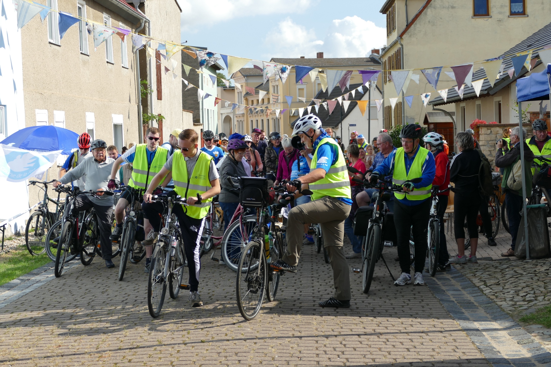 Sie war einfach nur schön und gelungen, die 1. Friedensspazierfahrt durch die Gemeinde Bördeland. Bei strahlendem Sonnenschein trafen sich am vergangenen Sonntag, über 70 Teilnehmer vor dem Radsportmuseum „Course de la Paix“ in Kleinmühlingen. Nach einem kleinen Frühstück ging es dann auf die 25 Kilometer lange Strecke durch die Gemeinde Bördeland. Wie es schon immer Tradition bei der großen Friedensfahrt war, stiegen auch am Start in Kleinmühlingen, Friedenstauben in den Himmel und die Fanfare der ehemaligen Radfernfahrt erklang zur Freude der vielen Gäste. Umwerfend war die Teilnahme der Radsportler aus allen Himmelsrichtungen des Landes. Bördeland, Welsleben , Calbe /Saale, Bernburg waren die näheren Heimatorte der Teilnehmer, aber auch aus Leipzig, Zwenkau ,Bad Doberan und Dresden, waren Sportfreunde angereist um an dieser Tour teilzunehmen. Abseits der großen Straßen ging es dann auf gut ausgebauten Landschaftswegen durch die Börde vorbei an Erntefeldern und die kleinen Gemeinden des Bördelandes. Hatte der sehr rührige Tour-Leiter Uwe Schlegel aus Bernburg anderthalb  Stunden für den Rundkurs veranschlagt, so trafen schon nach einer Stunde und vierundzwanzig Minuten das ganze Fahrerfeld wieder in Kleinmühlingen vor dem Radsportmuseum ein. Dort warteten schon Bockwurst, Kuchen und diverse Getränke auf die „erschöpften“ Radfahrer. Der selbstgebackene Kuchen von Frau Gudrun Schäfer vom Friedensfahrtmuseum ging weg wie die berühmten warmen Semmeln und die wunderschöne Radsportveranstaltung endete dann am frühen Nachmittag. Es sei noch bemerkt, das allen Organisatoren ein herzliches Danke ausgesprochen werden muss, die mit viel Herzblut und Hingabe diese Veranstaltung vorbereitet und durchgeführt haben. Ach so, niemand kam zu Fall und Pannen gab es auch nicht.