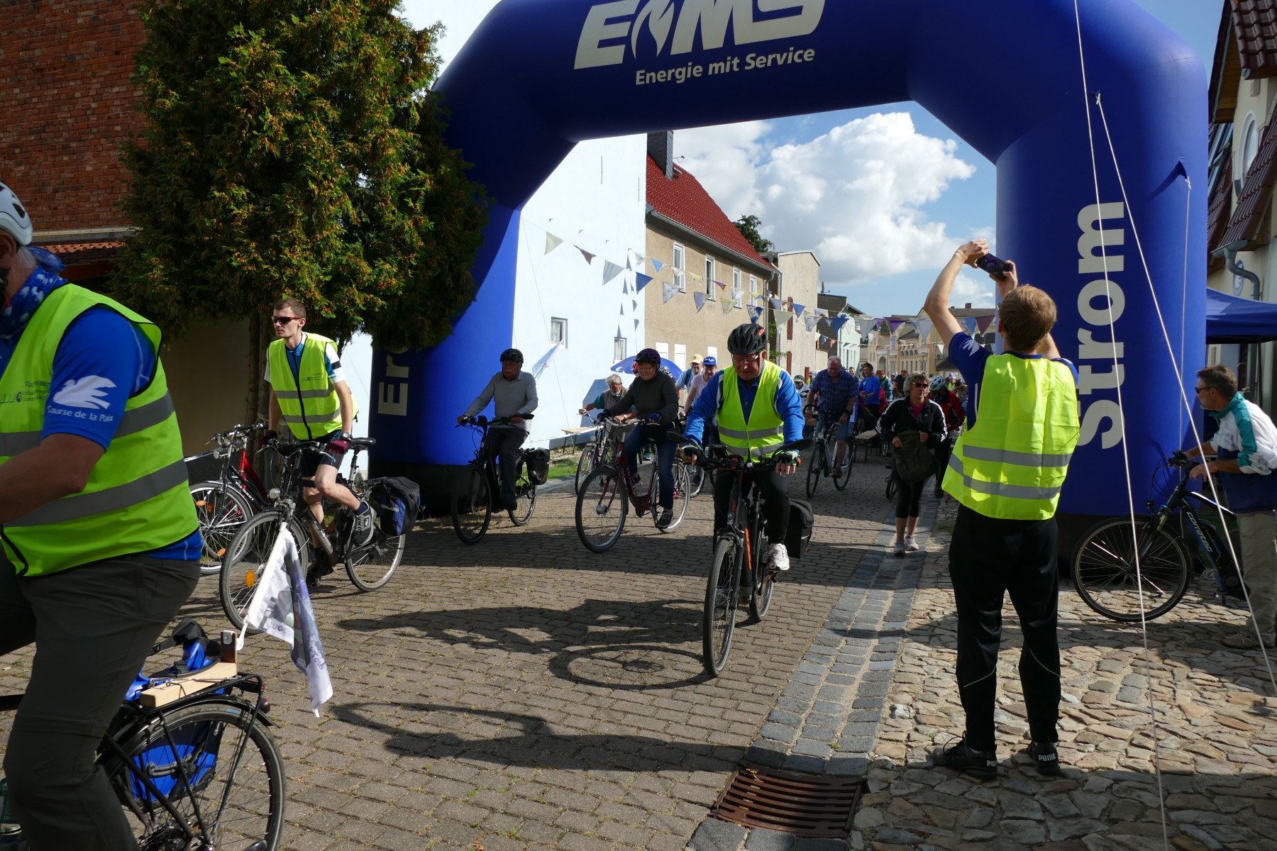 Sie war einfach nur schön und gelungen, die 1. Friedensspazierfahrt durch die Gemeinde Bördeland. Bei strahlendem Sonnenschein trafen sich am vergangenen Sonntag, über 70 Teilnehmer vor dem Radsportmuseum „Course de la Paix“ in Kleinmühlingen. Nach einem kleinen Frühstück ging es dann auf die 25 Kilometer lange Strecke durch die Gemeinde Bördeland. Wie es schon immer Tradition bei der großen Friedensfahrt war, stiegen auch am Start in Kleinmühlingen, Friedenstauben in den Himmel und die Fanfare der ehemaligen Radfernfahrt erklang zur Freude der vielen Gäste. Umwerfend war die Teilnahme der Radsportler aus allen Himmelsrichtungen des Landes. Bördeland, Welsleben , Calbe /Saale, Bernburg waren die näheren Heimatorte der Teilnehmer, aber auch aus Leipzig, Zwenkau ,Bad Doberan und Dresden, waren Sportfreunde angereist um an dieser Tour teilzunehmen. Abseits der großen Straßen ging es dann auf gut ausgebauten Landschaftswegen durch die Börde vorbei an Erntefeldern und die kleinen Gemeinden des Bördelandes. Hatte der sehr rührige Tour-Leiter Uwe Schlegel aus Bernburg anderthalb  Stunden für den Rundkurs veranschlagt, so trafen schon nach einer Stunde und vierundzwanzig Minuten das ganze Fahrerfeld wieder in Kleinmühlingen vor dem Radsportmuseum ein. Dort warteten schon Bockwurst, Kuchen und diverse Getränke auf die „erschöpften“ Radfahrer. Der selbstgebackene Kuchen von Frau Gudrun Schäfer vom Friedensfahrtmuseum ging weg wie die berühmten warmen Semmeln und die wunderschöne Radsportveranstaltung endete dann am frühen Nachmittag. Es sei noch bemerkt, das allen Organisatoren ein herzliches Danke ausgesprochen werden muss, die mit viel Herzblut und Hingabe diese Veranstaltung vorbereitet und durchgeführt haben. Ach so, niemand kam zu Fall und Pannen gab es auch nicht.