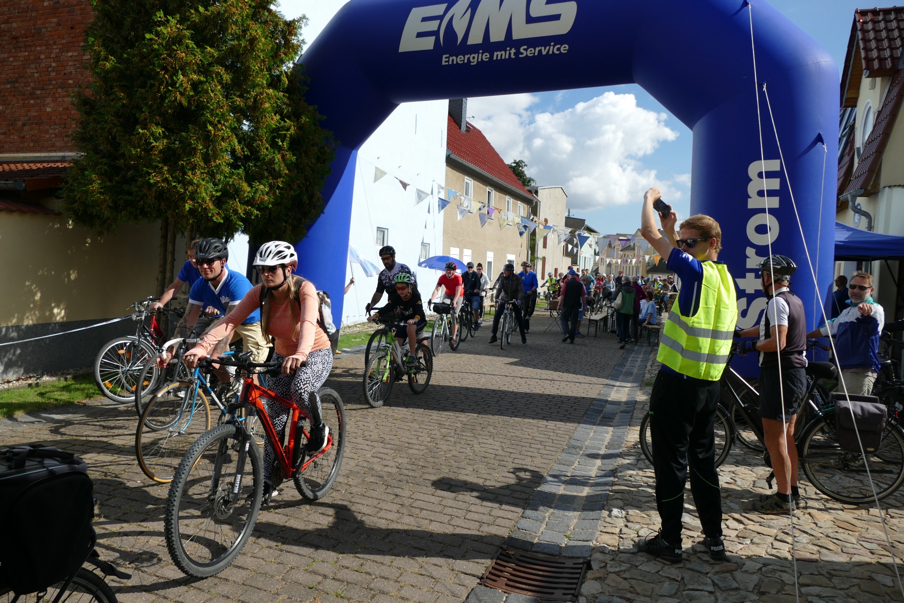 Sie war einfach nur schön und gelungen, die 1. Friedensspazierfahrt durch die Gemeinde Bördeland. Bei strahlendem Sonnenschein trafen sich am vergangenen Sonntag, über 70 Teilnehmer vor dem Radsportmuseum „Course de la Paix“ in Kleinmühlingen. Nach einem kleinen Frühstück ging es dann auf die 25 Kilometer lange Strecke durch die Gemeinde Bördeland. Wie es schon immer Tradition bei der großen Friedensfahrt war, stiegen auch am Start in Kleinmühlingen, Friedenstauben in den Himmel und die Fanfare der ehemaligen Radfernfahrt erklang zur Freude der vielen Gäste. Umwerfend war die Teilnahme der Radsportler aus allen Himmelsrichtungen des Landes. Bördeland, Welsleben , Calbe /Saale, Bernburg waren die näheren Heimatorte der Teilnehmer, aber auch aus Leipzig, Zwenkau ,Bad Doberan und Dresden, waren Sportfreunde angereist um an dieser Tour teilzunehmen. Abseits der großen Straßen ging es dann auf gut ausgebauten Landschaftswegen durch die Börde vorbei an Erntefeldern und die kleinen Gemeinden des Bördelandes. Hatte der sehr rührige Tour-Leiter Uwe Schlegel aus Bernburg anderthalb  Stunden für den Rundkurs veranschlagt, so trafen schon nach einer Stunde und vierundzwanzig Minuten das ganze Fahrerfeld wieder in Kleinmühlingen vor dem Radsportmuseum ein. Dort warteten schon Bockwurst, Kuchen und diverse Getränke auf die „erschöpften“ Radfahrer. Der selbstgebackene Kuchen von Frau Gudrun Schäfer vom Friedensfahrtmuseum ging weg wie die berühmten warmen Semmeln und die wunderschöne Radsportveranstaltung endete dann am frühen Nachmittag. Es sei noch bemerkt, das allen Organisatoren ein herzliches Danke ausgesprochen werden muss, die mit viel Herzblut und Hingabe diese Veranstaltung vorbereitet und durchgeführt haben. Ach so, niemand kam zu Fall und Pannen gab es auch nicht.