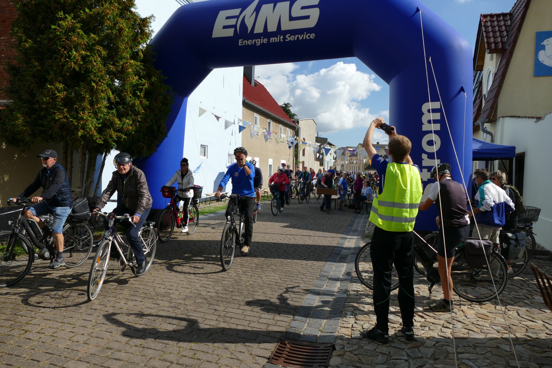 Sie war einfach nur schön und gelungen, die 1. Friedensspazierfahrt durch die Gemeinde Bördeland. Bei strahlendem Sonnenschein trafen sich am vergangenen Sonntag, über 70 Teilnehmer vor dem Radsportmuseum „Course de la Paix“ in Kleinmühlingen. Nach einem kleinen Frühstück ging es dann auf die 25 Kilometer lange Strecke durch die Gemeinde Bördeland. Wie es schon immer Tradition bei der großen Friedensfahrt war, stiegen auch am Start in Kleinmühlingen, Friedenstauben in den Himmel und die Fanfare der ehemaligen Radfernfahrt erklang zur Freude der vielen Gäste. Umwerfend war die Teilnahme der Radsportler aus allen Himmelsrichtungen des Landes. Bördeland, Welsleben , Calbe /Saale, Bernburg waren die näheren Heimatorte der Teilnehmer, aber auch aus Leipzig, Zwenkau ,Bad Doberan und Dresden, waren Sportfreunde angereist um an dieser Tour teilzunehmen. Abseits der großen Straßen ging es dann auf gut ausgebauten Landschaftswegen durch die Börde vorbei an Erntefeldern und die kleinen Gemeinden des Bördelandes. Hatte der sehr rührige Tour-Leiter Uwe Schlegel aus Bernburg anderthalb  Stunden für den Rundkurs veranschlagt, so trafen schon nach einer Stunde und vierundzwanzig Minuten das ganze Fahrerfeld wieder in Kleinmühlingen vor dem Radsportmuseum ein. Dort warteten schon Bockwurst, Kuchen und diverse Getränke auf die „erschöpften“ Radfahrer. Der selbstgebackene Kuchen von Frau Gudrun Schäfer vom Friedensfahrtmuseum ging weg wie die berühmten warmen Semmeln und die wunderschöne Radsportveranstaltung endete dann am frühen Nachmittag. Es sei noch bemerkt, das allen Organisatoren ein herzliches Danke ausgesprochen werden muss, die mit viel Herzblut und Hingabe diese Veranstaltung vorbereitet und durchgeführt haben. Ach so, niemand kam zu Fall und Pannen gab es auch nicht.