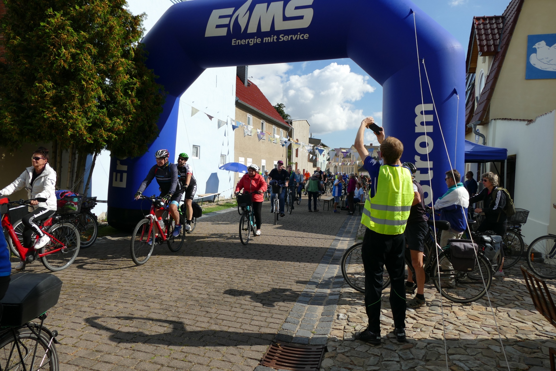 Sie war einfach nur schön und gelungen, die 1. Friedensspazierfahrt durch die Gemeinde Bördeland. Bei strahlendem Sonnenschein trafen sich am vergangenen Sonntag, über 70 Teilnehmer vor dem Radsportmuseum „Course de la Paix“ in Kleinmühlingen. Nach einem kleinen Frühstück ging es dann auf die 25 Kilometer lange Strecke durch die Gemeinde Bördeland. Wie es schon immer Tradition bei der großen Friedensfahrt war, stiegen auch am Start in Kleinmühlingen, Friedenstauben in den Himmel und die Fanfare der ehemaligen Radfernfahrt erklang zur Freude der vielen Gäste. Umwerfend war die Teilnahme der Radsportler aus allen Himmelsrichtungen des Landes. Bördeland, Welsleben , Calbe /Saale, Bernburg waren die näheren Heimatorte der Teilnehmer, aber auch aus Leipzig, Zwenkau ,Bad Doberan und Dresden, waren Sportfreunde angereist um an dieser Tour teilzunehmen. Abseits der großen Straßen ging es dann auf gut ausgebauten Landschaftswegen durch die Börde vorbei an Erntefeldern und die kleinen Gemeinden des Bördelandes. Hatte der sehr rührige Tour-Leiter Uwe Schlegel aus Bernburg anderthalb  Stunden für den Rundkurs veranschlagt, so trafen schon nach einer Stunde und vierundzwanzig Minuten das ganze Fahrerfeld wieder in Kleinmühlingen vor dem Radsportmuseum ein. Dort warteten schon Bockwurst, Kuchen und diverse Getränke auf die „erschöpften“ Radfahrer. Der selbstgebackene Kuchen von Frau Gudrun Schäfer vom Friedensfahrtmuseum ging weg wie die berühmten warmen Semmeln und die wunderschöne Radsportveranstaltung endete dann am frühen Nachmittag. Es sei noch bemerkt, das allen Organisatoren ein herzliches Danke ausgesprochen werden muss, die mit viel Herzblut und Hingabe diese Veranstaltung vorbereitet und durchgeführt haben. Ach so, niemand kam zu Fall und Pannen gab es auch nicht.