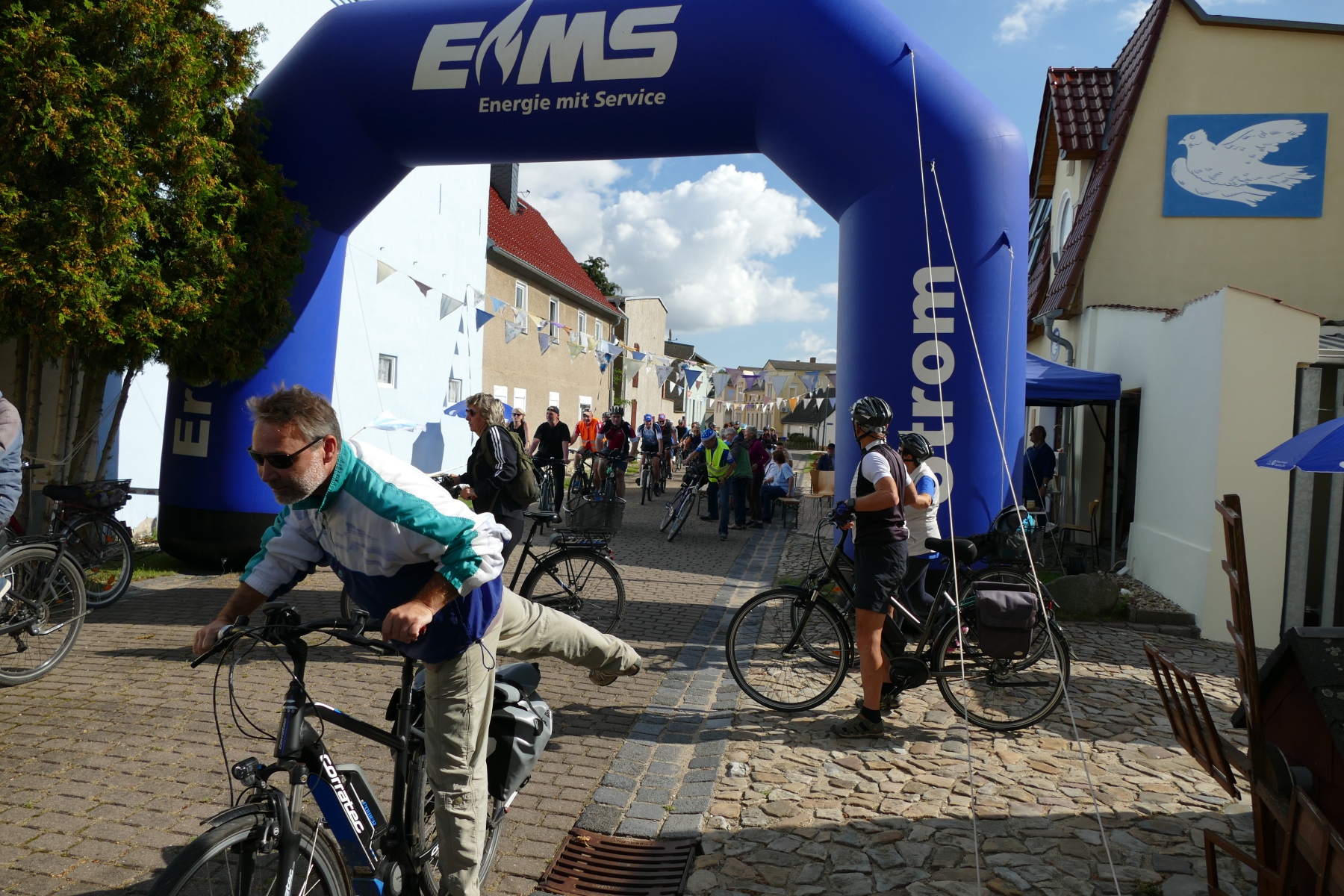 Sie war einfach nur schön und gelungen, die 1. Friedensspazierfahrt durch die Gemeinde Bördeland. Bei strahlendem Sonnenschein trafen sich am vergangenen Sonntag, über 70 Teilnehmer vor dem Radsportmuseum „Course de la Paix“ in Kleinmühlingen. Nach einem kleinen Frühstück ging es dann auf die 25 Kilometer lange Strecke durch die Gemeinde Bördeland. Wie es schon immer Tradition bei der großen Friedensfahrt war, stiegen auch am Start in Kleinmühlingen, Friedenstauben in den Himmel und die Fanfare der ehemaligen Radfernfahrt erklang zur Freude der vielen Gäste. Umwerfend war die Teilnahme der Radsportler aus allen Himmelsrichtungen des Landes. Bördeland, Welsleben , Calbe /Saale, Bernburg waren die näheren Heimatorte der Teilnehmer, aber auch aus Leipzig, Zwenkau ,Bad Doberan und Dresden, waren Sportfreunde angereist um an dieser Tour teilzunehmen. Abseits der großen Straßen ging es dann auf gut ausgebauten Landschaftswegen durch die Börde vorbei an Erntefeldern und die kleinen Gemeinden des Bördelandes. Hatte der sehr rührige Tour-Leiter Uwe Schlegel aus Bernburg anderthalb  Stunden für den Rundkurs veranschlagt, so trafen schon nach einer Stunde und vierundzwanzig Minuten das ganze Fahrerfeld wieder in Kleinmühlingen vor dem Radsportmuseum ein. Dort warteten schon Bockwurst, Kuchen und diverse Getränke auf die „erschöpften“ Radfahrer. Der selbstgebackene Kuchen von Frau Gudrun Schäfer vom Friedensfahrtmuseum ging weg wie die berühmten warmen Semmeln und die wunderschöne Radsportveranstaltung endete dann am frühen Nachmittag. Es sei noch bemerkt, das allen Organisatoren ein herzliches Danke ausgesprochen werden muss, die mit viel Herzblut und Hingabe diese Veranstaltung vorbereitet und durchgeführt haben. Ach so, niemand kam zu Fall und Pannen gab es auch nicht.