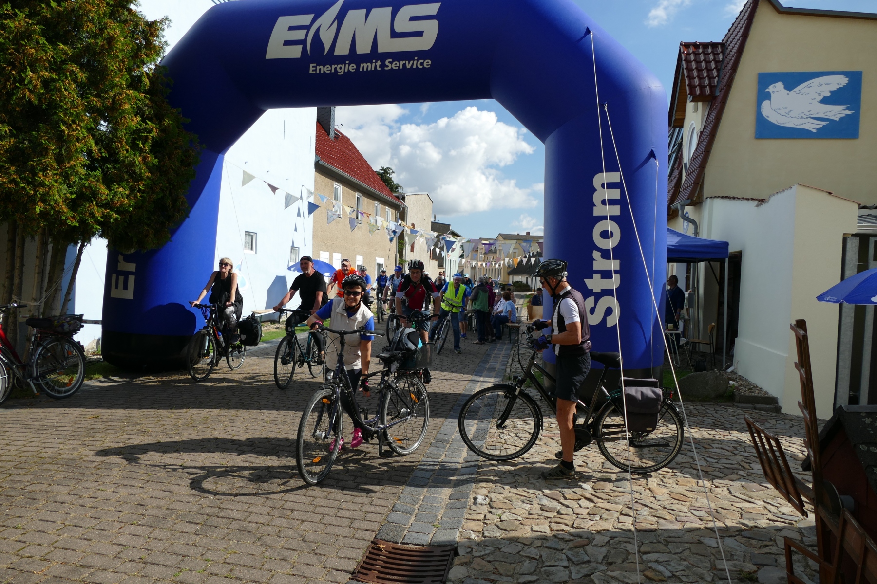 Sie war einfach nur schön und gelungen, die 1. Friedensspazierfahrt durch die Gemeinde Bördeland. Bei strahlendem Sonnenschein trafen sich am vergangenen Sonntag, über 70 Teilnehmer vor dem Radsportmuseum „Course de la Paix“ in Kleinmühlingen. Nach einem kleinen Frühstück ging es dann auf die 25 Kilometer lange Strecke durch die Gemeinde Bördeland. Wie es schon immer Tradition bei der großen Friedensfahrt war, stiegen auch am Start in Kleinmühlingen, Friedenstauben in den Himmel und die Fanfare der ehemaligen Radfernfahrt erklang zur Freude der vielen Gäste. Umwerfend war die Teilnahme der Radsportler aus allen Himmelsrichtungen des Landes. Bördeland, Welsleben , Calbe /Saale, Bernburg waren die näheren Heimatorte der Teilnehmer, aber auch aus Leipzig, Zwenkau ,Bad Doberan und Dresden, waren Sportfreunde angereist um an dieser Tour teilzunehmen. Abseits der großen Straßen ging es dann auf gut ausgebauten Landschaftswegen durch die Börde vorbei an Erntefeldern und die kleinen Gemeinden des Bördelandes. Hatte der sehr rührige Tour-Leiter Uwe Schlegel aus Bernburg anderthalb  Stunden für den Rundkurs veranschlagt, so trafen schon nach einer Stunde und vierundzwanzig Minuten das ganze Fahrerfeld wieder in Kleinmühlingen vor dem Radsportmuseum ein. Dort warteten schon Bockwurst, Kuchen und diverse Getränke auf die „erschöpften“ Radfahrer. Der selbstgebackene Kuchen von Frau Gudrun Schäfer vom Friedensfahrtmuseum ging weg wie die berühmten warmen Semmeln und die wunderschöne Radsportveranstaltung endete dann am frühen Nachmittag. Es sei noch bemerkt, das allen Organisatoren ein herzliches Danke ausgesprochen werden muss, die mit viel Herzblut und Hingabe diese Veranstaltung vorbereitet und durchgeführt haben. Ach so, niemand kam zu Fall und Pannen gab es auch nicht.