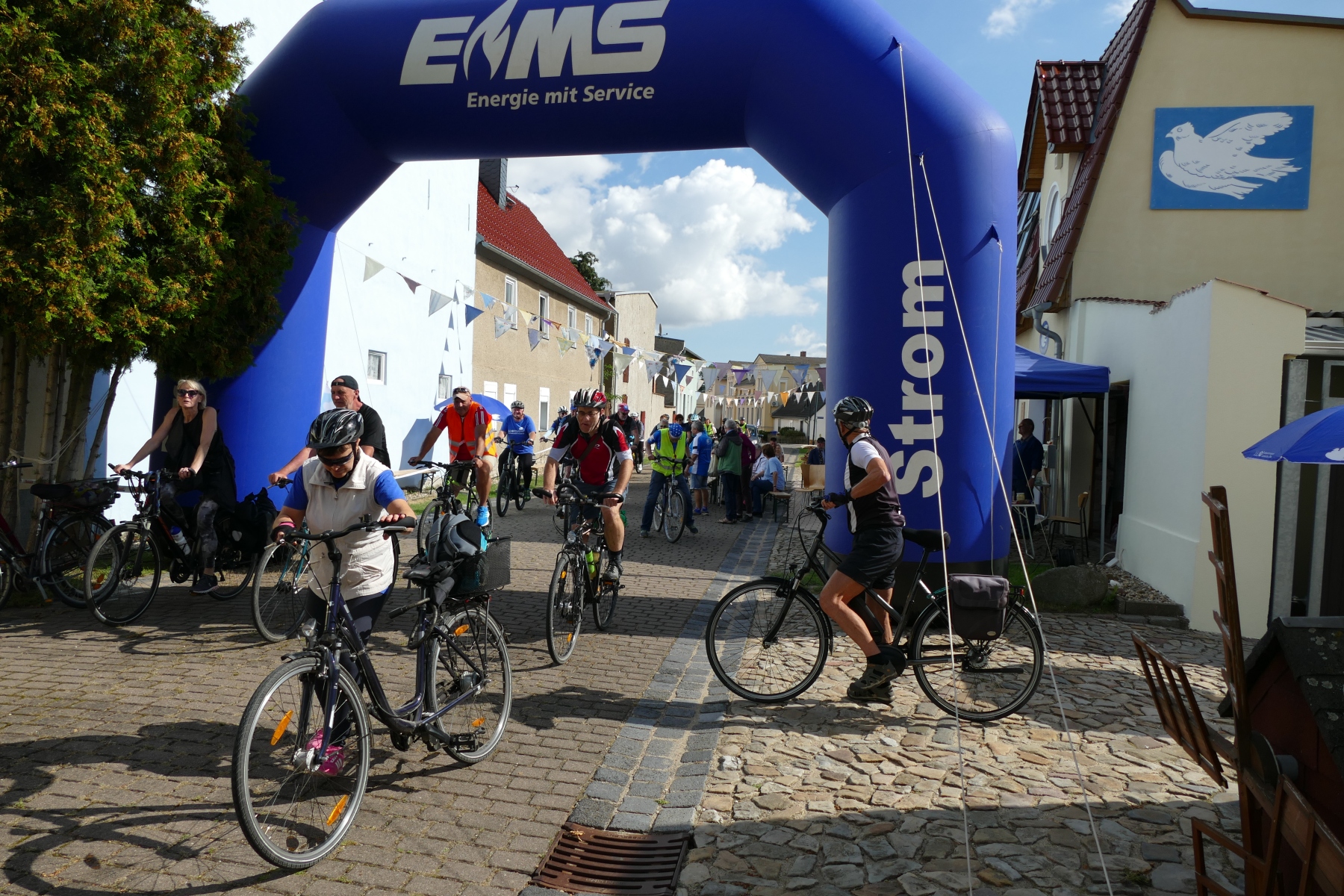 Sie war einfach nur schön und gelungen, die 1. Friedensspazierfahrt durch die Gemeinde Bördeland. Bei strahlendem Sonnenschein trafen sich am vergangenen Sonntag, über 70 Teilnehmer vor dem Radsportmuseum „Course de la Paix“ in Kleinmühlingen. Nach einem kleinen Frühstück ging es dann auf die 25 Kilometer lange Strecke durch die Gemeinde Bördeland. Wie es schon immer Tradition bei der großen Friedensfahrt war, stiegen auch am Start in Kleinmühlingen, Friedenstauben in den Himmel und die Fanfare der ehemaligen Radfernfahrt erklang zur Freude der vielen Gäste. Umwerfend war die Teilnahme der Radsportler aus allen Himmelsrichtungen des Landes. Bördeland, Welsleben , Calbe /Saale, Bernburg waren die näheren Heimatorte der Teilnehmer, aber auch aus Leipzig, Zwenkau ,Bad Doberan und Dresden, waren Sportfreunde angereist um an dieser Tour teilzunehmen. Abseits der großen Straßen ging es dann auf gut ausgebauten Landschaftswegen durch die Börde vorbei an Erntefeldern und die kleinen Gemeinden des Bördelandes. Hatte der sehr rührige Tour-Leiter Uwe Schlegel aus Bernburg anderthalb  Stunden für den Rundkurs veranschlagt, so trafen schon nach einer Stunde und vierundzwanzig Minuten das ganze Fahrerfeld wieder in Kleinmühlingen vor dem Radsportmuseum ein. Dort warteten schon Bockwurst, Kuchen und diverse Getränke auf die „erschöpften“ Radfahrer. Der selbstgebackene Kuchen von Frau Gudrun Schäfer vom Friedensfahrtmuseum ging weg wie die berühmten warmen Semmeln und die wunderschöne Radsportveranstaltung endete dann am frühen Nachmittag. Es sei noch bemerkt, das allen Organisatoren ein herzliches Danke ausgesprochen werden muss, die mit viel Herzblut und Hingabe diese Veranstaltung vorbereitet und durchgeführt haben. Ach so, niemand kam zu Fall und Pannen gab es auch nicht.