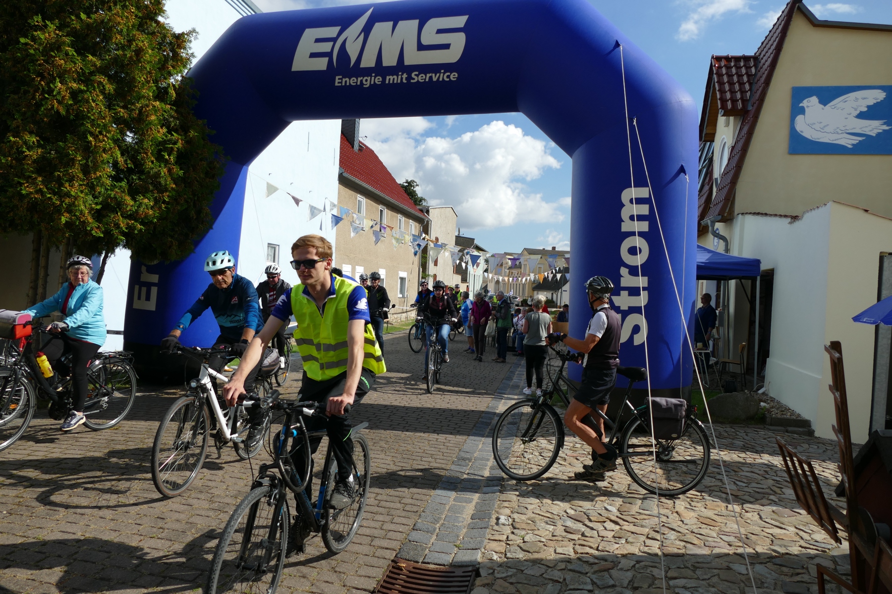 Sie war einfach nur schön und gelungen, die 1. Friedensspazierfahrt durch die Gemeinde Bördeland. Bei strahlendem Sonnenschein trafen sich am vergangenen Sonntag, über 70 Teilnehmer vor dem Radsportmuseum „Course de la Paix“ in Kleinmühlingen. Nach einem kleinen Frühstück ging es dann auf die 25 Kilometer lange Strecke durch die Gemeinde Bördeland. Wie es schon immer Tradition bei der großen Friedensfahrt war, stiegen auch am Start in Kleinmühlingen, Friedenstauben in den Himmel und die Fanfare der ehemaligen Radfernfahrt erklang zur Freude der vielen Gäste. Umwerfend war die Teilnahme der Radsportler aus allen Himmelsrichtungen des Landes. Bördeland, Welsleben , Calbe /Saale, Bernburg waren die näheren Heimatorte der Teilnehmer, aber auch aus Leipzig, Zwenkau ,Bad Doberan und Dresden, waren Sportfreunde angereist um an dieser Tour teilzunehmen. Abseits der großen Straßen ging es dann auf gut ausgebauten Landschaftswegen durch die Börde vorbei an Erntefeldern und die kleinen Gemeinden des Bördelandes. Hatte der sehr rührige Tour-Leiter Uwe Schlegel aus Bernburg anderthalb  Stunden für den Rundkurs veranschlagt, so trafen schon nach einer Stunde und vierundzwanzig Minuten das ganze Fahrerfeld wieder in Kleinmühlingen vor dem Radsportmuseum ein. Dort warteten schon Bockwurst, Kuchen und diverse Getränke auf die „erschöpften“ Radfahrer. Der selbstgebackene Kuchen von Frau Gudrun Schäfer vom Friedensfahrtmuseum ging weg wie die berühmten warmen Semmeln und die wunderschöne Radsportveranstaltung endete dann am frühen Nachmittag. Es sei noch bemerkt, das allen Organisatoren ein herzliches Danke ausgesprochen werden muss, die mit viel Herzblut und Hingabe diese Veranstaltung vorbereitet und durchgeführt haben. Ach so, niemand kam zu Fall und Pannen gab es auch nicht.