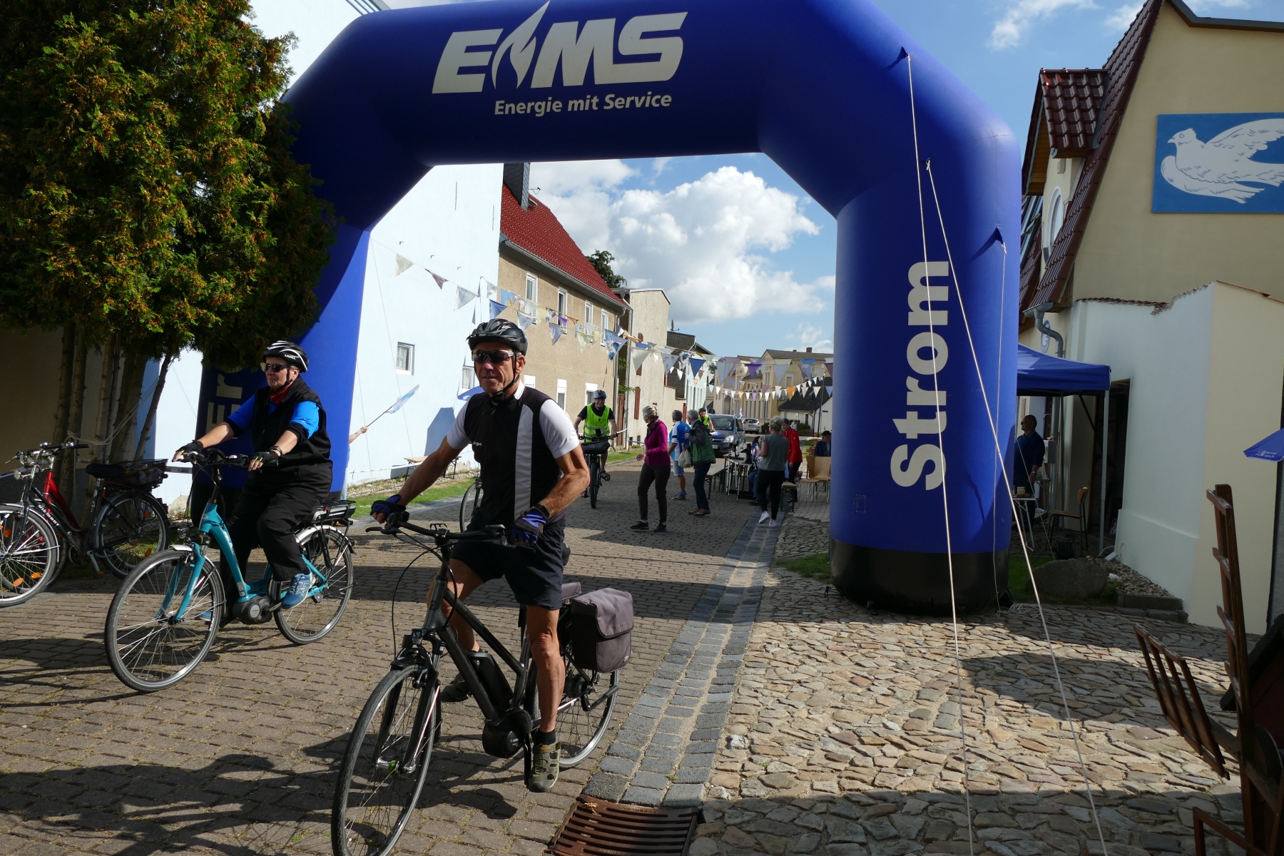 Sie war einfach nur schön und gelungen, die 1. Friedensspazierfahrt durch die Gemeinde Bördeland. Bei strahlendem Sonnenschein trafen sich am vergangenen Sonntag, über 70 Teilnehmer vor dem Radsportmuseum „Course de la Paix“ in Kleinmühlingen. Nach einem kleinen Frühstück ging es dann auf die 25 Kilometer lange Strecke durch die Gemeinde Bördeland. Wie es schon immer Tradition bei der großen Friedensfahrt war, stiegen auch am Start in Kleinmühlingen, Friedenstauben in den Himmel und die Fanfare der ehemaligen Radfernfahrt erklang zur Freude der vielen Gäste. Umwerfend war die Teilnahme der Radsportler aus allen Himmelsrichtungen des Landes. Bördeland, Welsleben , Calbe /Saale, Bernburg waren die näheren Heimatorte der Teilnehmer, aber auch aus Leipzig, Zwenkau ,Bad Doberan und Dresden, waren Sportfreunde angereist um an dieser Tour teilzunehmen. Abseits der großen Straßen ging es dann auf gut ausgebauten Landschaftswegen durch die Börde vorbei an Erntefeldern und die kleinen Gemeinden des Bördelandes. Hatte der sehr rührige Tour-Leiter Uwe Schlegel aus Bernburg anderthalb  Stunden für den Rundkurs veranschlagt, so trafen schon nach einer Stunde und vierundzwanzig Minuten das ganze Fahrerfeld wieder in Kleinmühlingen vor dem Radsportmuseum ein. Dort warteten schon Bockwurst, Kuchen und diverse Getränke auf die „erschöpften“ Radfahrer. Der selbstgebackene Kuchen von Frau Gudrun Schäfer vom Friedensfahrtmuseum ging weg wie die berühmten warmen Semmeln und die wunderschöne Radsportveranstaltung endete dann am frühen Nachmittag. Es sei noch bemerkt, das allen Organisatoren ein herzliches Danke ausgesprochen werden muss, die mit viel Herzblut und Hingabe diese Veranstaltung vorbereitet und durchgeführt haben. Ach so, niemand kam zu Fall und Pannen gab es auch nicht.