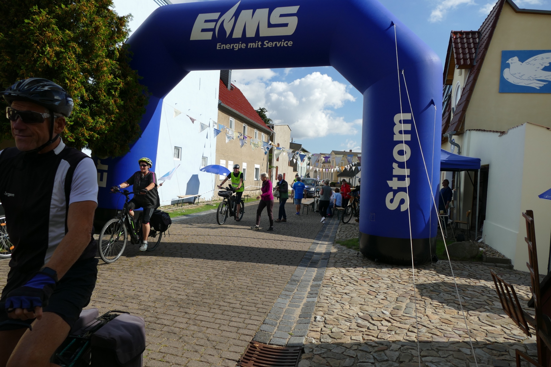 Sie war einfach nur schön und gelungen, die 1. Friedensspazierfahrt durch die Gemeinde Bördeland. Bei strahlendem Sonnenschein trafen sich am vergangenen Sonntag, über 70 Teilnehmer vor dem Radsportmuseum „Course de la Paix“ in Kleinmühlingen. Nach einem kleinen Frühstück ging es dann auf die 25 Kilometer lange Strecke durch die Gemeinde Bördeland. Wie es schon immer Tradition bei der großen Friedensfahrt war, stiegen auch am Start in Kleinmühlingen, Friedenstauben in den Himmel und die Fanfare der ehemaligen Radfernfahrt erklang zur Freude der vielen Gäste. Umwerfend war die Teilnahme der Radsportler aus allen Himmelsrichtungen des Landes. Bördeland, Welsleben , Calbe /Saale, Bernburg waren die näheren Heimatorte der Teilnehmer, aber auch aus Leipzig, Zwenkau ,Bad Doberan und Dresden, waren Sportfreunde angereist um an dieser Tour teilzunehmen. Abseits der großen Straßen ging es dann auf gut ausgebauten Landschaftswegen durch die Börde vorbei an Erntefeldern und die kleinen Gemeinden des Bördelandes. Hatte der sehr rührige Tour-Leiter Uwe Schlegel aus Bernburg anderthalb  Stunden für den Rundkurs veranschlagt, so trafen schon nach einer Stunde und vierundzwanzig Minuten das ganze Fahrerfeld wieder in Kleinmühlingen vor dem Radsportmuseum ein. Dort warteten schon Bockwurst, Kuchen und diverse Getränke auf die „erschöpften“ Radfahrer. Der selbstgebackene Kuchen von Frau Gudrun Schäfer vom Friedensfahrtmuseum ging weg wie die berühmten warmen Semmeln und die wunderschöne Radsportveranstaltung endete dann am frühen Nachmittag. Es sei noch bemerkt, das allen Organisatoren ein herzliches Danke ausgesprochen werden muss, die mit viel Herzblut und Hingabe diese Veranstaltung vorbereitet und durchgeführt haben. Ach so, niemand kam zu Fall und Pannen gab es auch nicht.