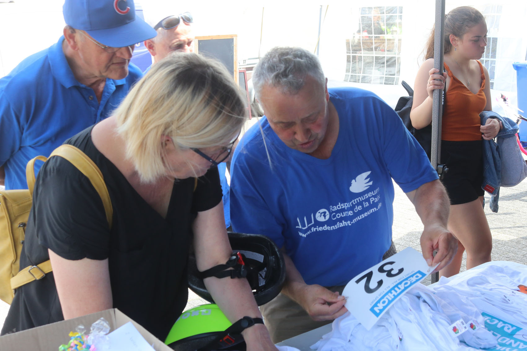 90 Kinder aus Grundschulen der Region gingen in drei Altersgruppen jeweils für Mädchen und Jungen diesmal beim „Decathlon-Dikke Banden Race“ an den Start. Das war ein Rekord-Teilnehmerfeld, denn selbst die Männer-Elite brachte es nur auf 84 Teilnehmer. Wo gibt es Vergleichbares? Auch dass die Kleinen unter Aufsicht einer Jury der Königlichen Niederländischen Radsportunion ihre Rennen austrugen ist wohl einmalig. Am Ende gab es für jeden der sechs Sieger ein Gelbes Trikot – überreicht vom Museumschef Horst Schäfer aus Kleinmühlingen.