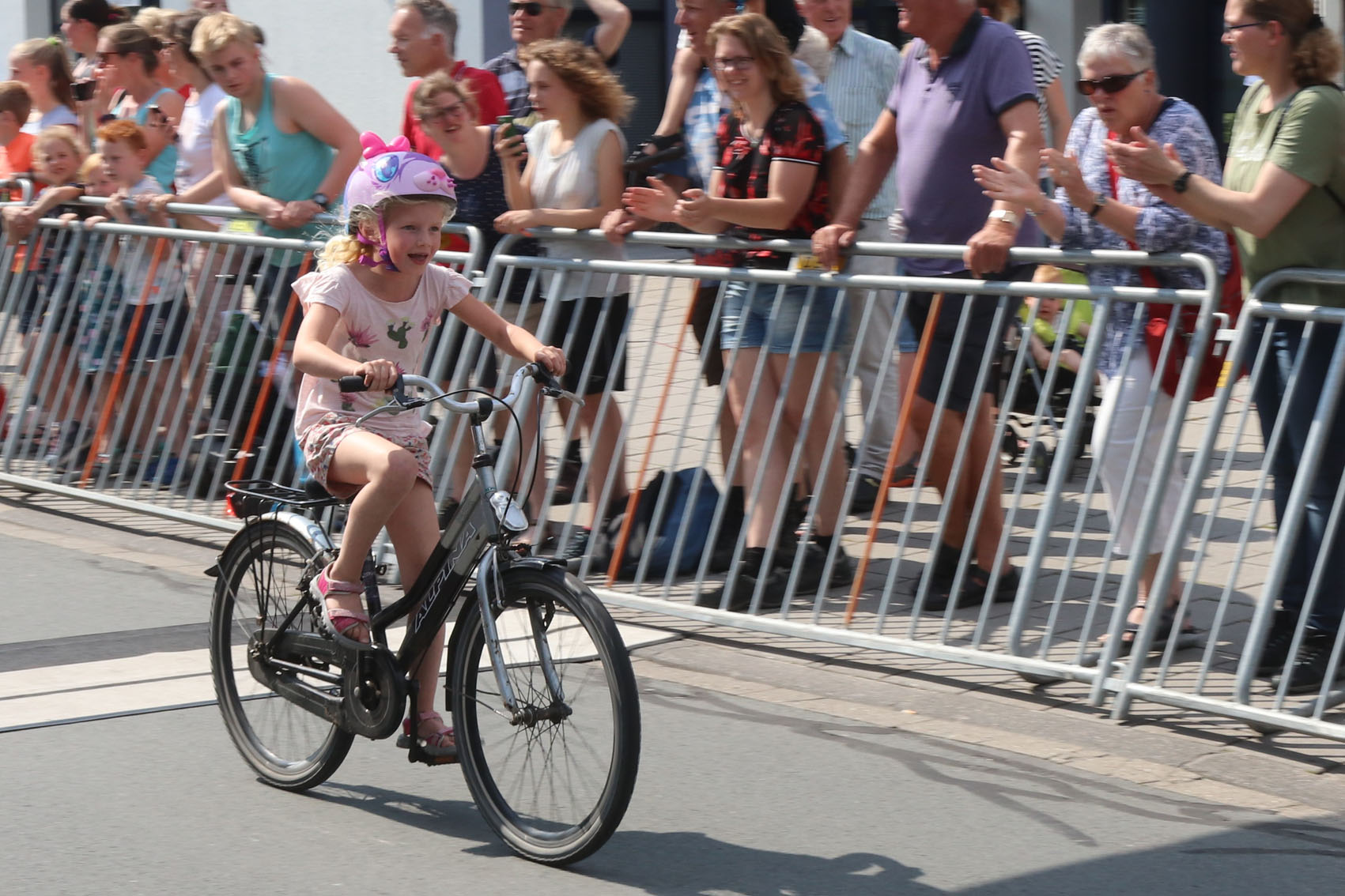 90 Kinder aus Grundschulen der Region gingen in drei Altersgruppen jeweils für Mädchen und Jungen diesmal beim „Decathlon-Dikke Banden Race“ an den Start. Das war ein Rekord-Teilnehmerfeld, denn selbst die Männer-Elite brachte es nur auf 84 Teilnehmer. Wo gibt es Vergleichbares? Auch dass die Kleinen unter Aufsicht einer Jury der Königlichen Niederländischen Radsportunion ihre Rennen austrugen ist wohl einmalig. Am Ende gab es für jeden der sechs Sieger ein Gelbes Trikot – überreicht vom Museumschef Horst Schäfer aus Kleinmühlingen.