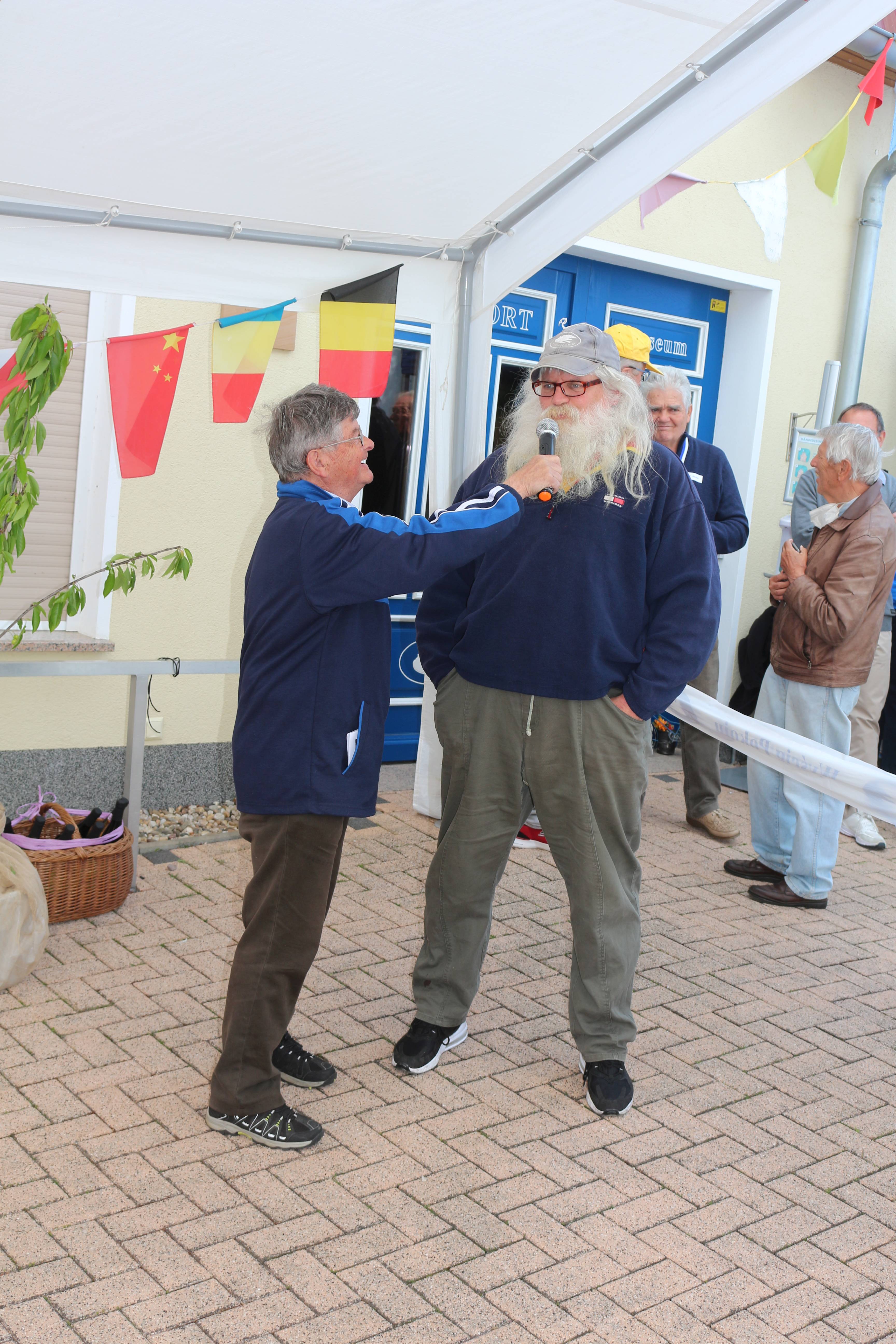 Es war ein wunderschöner Tag im kleinen Bördedorf Kleinmühlingen, der „Vatertag“ am Donnerstag, dem 26.Mai 2022. Mit viel Liebe und einer immensen Vorarbeit, hatte der Verein vom Radsportmuseum „Course de la Paix“ ein Fest auf die Beine gestellt, dass hunderte Besucher angelockt hat. Alle geladenen ehemaligen Friedensfahrer, Trainer und Betreuer waren der Einladung gefolgt und trugen maßgeblich dazu bei, dass der Tag auch ein voller Erfolg wurde. Doch der Tag begann für die geladene Gäste zunächst in Schönebeck. Nach gutem Frühstück im Hotel wurde ein kleiner Spaziergang in den Kurpark unternommen. Eine sehr nette Mitarbeiterin der Kurparkinformation übernahm es dann, den Gästen das Solebad und seine technischen Einrichtungen rund um das Salz zu erklären. Höhepunkt war die „Besteigung“ des Gradierwerkes und aus luftiger Höhe hatte man einen herrlichen Rundblick über Bad Salzelmen und Umgebung. Sehr lobend äußerte man sich über die gepflegten Anlagen und Einrichtungen des Kurparkes. Die Fahrt ging dann anschließen per Bus nach Kleinmühlingen, wo schon viele Besucher auf ihre „Radsportstars“ voller Ungeduld warteten. Und um das Museum ein wahres Volksfest. Niemand musste dursten und hungern und ganz besonderen Anklang fanden die selbsgebackenen Kuchen der fleißigen Frauen vom Gymnastik- und Kirchbauverein. Wie in alten Zeiten, wurden dann die ehemaligen „Ritter der Pedalen“ durch den Moderator Reiner Rechenberger, dem Publikum vorgestellt. Jeder erhielt seine Erinnerungsmedaille und als kleines Präsent eine Salzlandkiste mit Produkten der Region. Doch auch die Gäste hatten Geschenke im Gepäck und wurden an Horst Schäfer für das Museum überreicht. Ortwin Czarnowski, ehemaliges Mitglied der Friedensfahrtmannschaft der Bundesrepublik 1967, überreichte neben gutem Wein aus der Hanauer Region, einen jungen Kirschbaum und einen Eichensetzling, die nun im Garten von Schäfers wachsen und gedeihen sollen. Die nächsten Stunden nach der Vorstellung waren dann angefüllt mit vielen Gesprächen und Diskussionen rund um den Radsport und auch die Autogrammjäger kamen nicht zu kurz. Besonders Peter Becker, der ehemalige Trainer von Jan Ullrich musste viele Fragen beantworten und konnte einige Geschichten aus seiner Zeit mit Ullrich erzählen. Ja, „Ulle“ war schon ein Jahrhunderttalent und durch seine großen sportlichen Erfolge, für einen Trainer immer ein Beweis, dass junge Menschen durch Sport formbar sind und Höchstleistungen erreichen können. Aber Becker sagte auch zu einigen Fragen nur sehr diplomatisch, dass jeder Mensch seines Glückes Schmied ist. Irgendwie zutreffend auf seinen ehemaligen Schützling. Als der Tag vor dem Radsportmuseum langsam sich dem Ende neigte, stiegen wie bei jedem Treffen, die weißen Tauben, das Symbol der Friedensfahrt, in den abendlichen Himmel über Kleinmühlingen und trugen ein Botschaft mit sich fort. Möge der Frieden wieder einkehren und erhalten bleiben. Nach langer Wartezeit war es für die Mannschaft um Horst Schäfer und dem Museum jedenfalls eine sehr gelungene Veranstaltung und die vielen Besucher und Gästen fanden viele lobende