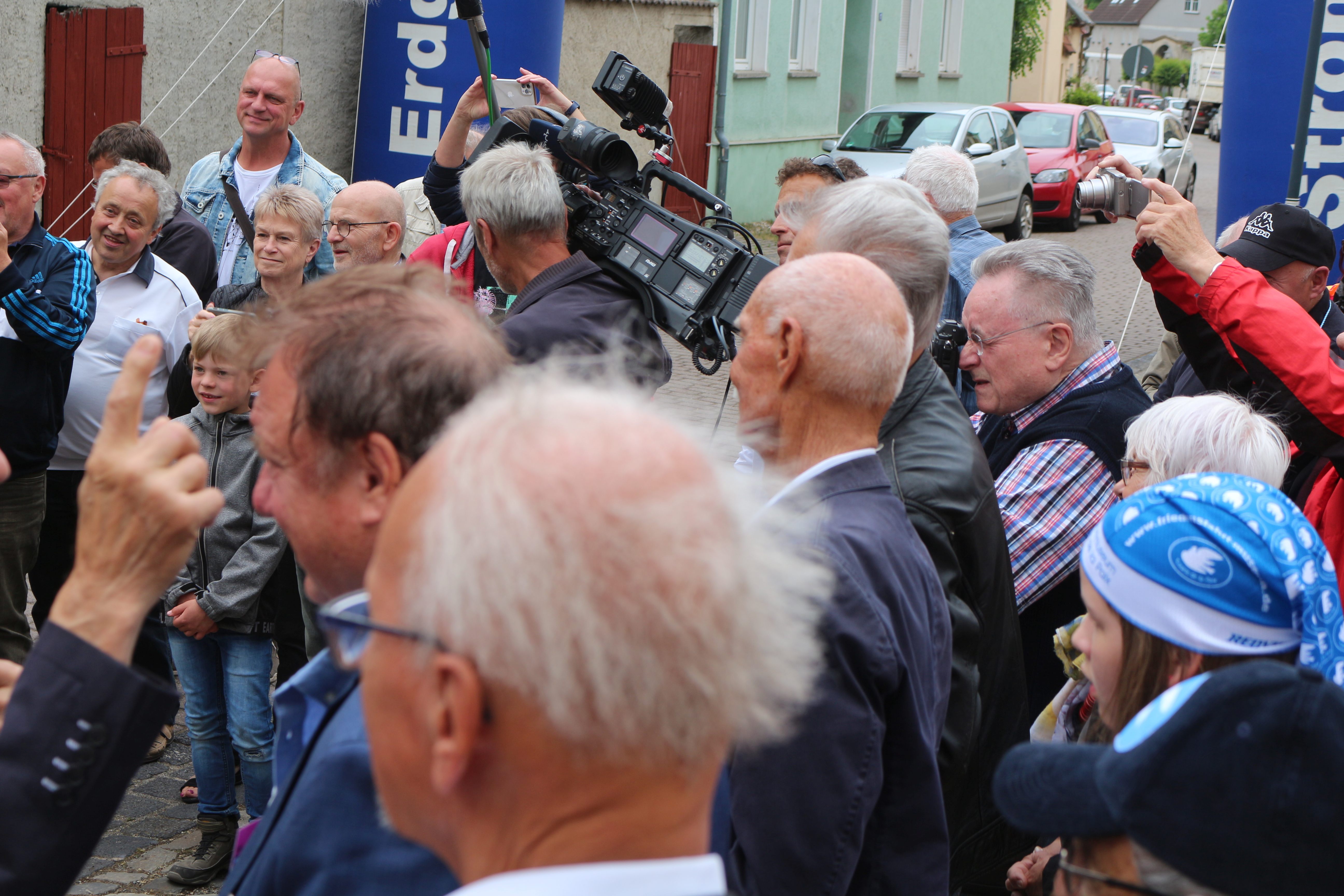 Es war ein wunderschöner Tag im kleinen Bördedorf Kleinmühlingen, der „Vatertag“ am Donnerstag, dem 26.Mai 2022. Mit viel Liebe und einer immensen Vorarbeit, hatte der Verein vom Radsportmuseum „Course de la Paix“ ein Fest auf die Beine gestellt, dass hunderte Besucher angelockt hat. Alle geladenen ehemaligen Friedensfahrer, Trainer und Betreuer waren der Einladung gefolgt und trugen maßgeblich dazu bei, dass der Tag auch ein voller Erfolg wurde. Doch der Tag begann für die geladene Gäste zunächst in Schönebeck. Nach gutem Frühstück im Hotel wurde ein kleiner Spaziergang in den Kurpark unternommen. Eine sehr nette Mitarbeiterin der Kurparkinformation übernahm es dann, den Gästen das Solebad und seine technischen Einrichtungen rund um das Salz zu erklären. Höhepunkt war die „Besteigung“ des Gradierwerkes und aus luftiger Höhe hatte man einen herrlichen Rundblick über Bad Salzelmen und Umgebung. Sehr lobend äußerte man sich über die gepflegten Anlagen und Einrichtungen des Kurparkes. Die Fahrt ging dann anschließen per Bus nach Kleinmühlingen, wo schon viele Besucher auf ihre „Radsportstars“ voller Ungeduld warteten. Und um das Museum ein wahres Volksfest. Niemand musste dursten und hungern und ganz besonderen Anklang fanden die selbsgebackenen Kuchen der fleißigen Frauen vom Gymnastik- und Kirchbauverein. Wie in alten Zeiten, wurden dann die ehemaligen „Ritter der Pedalen“ durch den Moderator Reiner Rechenberger, dem Publikum vorgestellt. Jeder erhielt seine Erinnerungsmedaille und als kleines Präsent eine Salzlandkiste mit Produkten der Region. Doch auch die Gäste hatten Geschenke im Gepäck und wurden an Horst Schäfer für das Museum überreicht. Ortwin Czarnowski, ehemaliges Mitglied der Friedensfahrtmannschaft der Bundesrepublik 1967, überreichte neben gutem Wein aus der Hanauer Region, einen jungen Kirschbaum und einen Eichensetzling, die nun im Garten von Schäfers wachsen und gedeihen sollen. Die nächsten Stunden nach der Vorstellung waren dann angefüllt mit vielen Gesprächen und Diskussionen rund um den Radsport und auch die Autogrammjäger kamen nicht zu kurz. Besonders Peter Becker, der ehemalige Trainer von Jan Ullrich musste viele Fragen beantworten und konnte einige Geschichten aus seiner Zeit mit Ullrich erzählen. Ja, „Ulle“ war schon ein Jahrhunderttalent und durch seine großen sportlichen Erfolge, für einen Trainer immer ein Beweis, dass junge Menschen durch Sport formbar sind und Höchstleistungen erreichen können. Aber Becker sagte auch zu einigen Fragen nur sehr diplomatisch, dass jeder Mensch seines Glückes Schmied ist. Irgendwie zutreffend auf seinen ehemaligen Schützling. Als der Tag vor dem Radsportmuseum langsam sich dem Ende neigte, stiegen wie bei jedem Treffen, die weißen Tauben, das Symbol der Friedensfahrt, in den abendlichen Himmel über Kleinmühlingen und trugen ein Botschaft mit sich fort. Möge der Frieden wieder einkehren und erhalten bleiben. Nach langer Wartezeit war es für die Mannschaft um Horst Schäfer und dem Museum jedenfalls eine sehr gelungene Veranstaltung und die vielen Besucher und Gästen fanden viele lobende