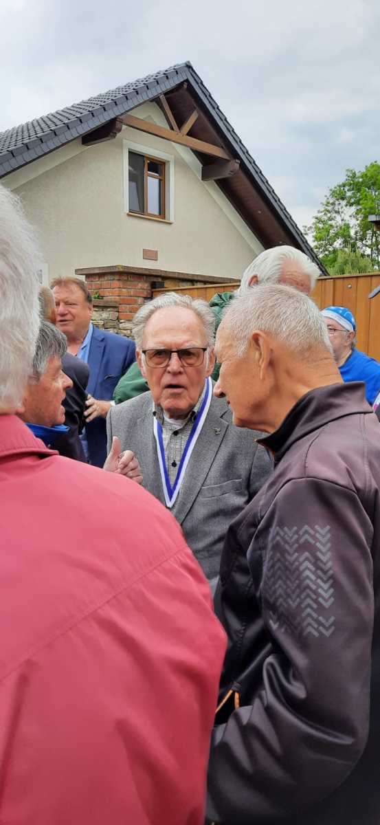 Es war ein wunderschöner Tag im kleinen Bördedorf Kleinmühlingen, der „Vatertag“ am Donnerstag, dem 26.Mai 2022. Mit viel Liebe und einer immensen Vorarbeit, hatte der Verein vom Radsportmuseum „Course de la Paix“ ein Fest auf die Beine gestellt, dass hunderte Besucher angelockt hat. Alle geladenen ehemaligen Friedensfahrer, Trainer und Betreuer waren der Einladung gefolgt und trugen maßgeblich dazu bei, dass der Tag auch ein voller Erfolg wurde. Doch der Tag begann für die geladene Gäste zunächst in Schönebeck. Nach gutem Frühstück im Hotel wurde ein kleiner Spaziergang in den Kurpark unternommen. Eine sehr nette Mitarbeiterin der Kurparkinformation übernahm es dann, den Gästen das Solebad und seine technischen Einrichtungen rund um das Salz zu erklären. Höhepunkt war die „Besteigung“ des Gradierwerkes und aus luftiger Höhe hatte man einen herrlichen Rundblick über Bad Salzelmen und Umgebung. Sehr lobend äußerte man sich über die gepflegten Anlagen und Einrichtungen des Kurparkes. Die Fahrt ging dann anschließen per Bus nach Kleinmühlingen, wo schon viele Besucher auf ihre „Radsportstars“ voller Ungeduld warteten. Und um das Museum ein wahres Volksfest. Niemand musste dursten und hungern und ganz besonderen Anklang fanden die selbsgebackenen Kuchen der fleißigen Frauen vom Gymnastik- und Kirchbauverein. Wie in alten Zeiten, wurden dann die ehemaligen „Ritter der Pedalen“ durch den Moderator Reiner Rechenberger, dem Publikum vorgestellt. Jeder erhielt seine Erinnerungsmedaille und als kleines Präsent eine Salzlandkiste mit Produkten der Region. Doch auch die Gäste hatten Geschenke im Gepäck und wurden an Horst Schäfer für das Museum überreicht. Ortwin Czarnowski, ehemaliges Mitglied der Friedensfahrtmannschaft der Bundesrepublik 1967, überreichte neben gutem Wein aus der Hanauer Region, einen jungen Kirschbaum und einen Eichensetzling, die nun im Garten von Schäfers wachsen und gedeihen sollen. Die nächsten Stunden nach der Vorstellung waren dann angefüllt mit vielen Gesprächen und Diskussionen rund um den Radsport und auch die Autogrammjäger kamen nicht zu kurz. Besonders Peter Becker, der ehemalige Trainer von Jan Ullrich musste viele Fragen beantworten und konnte einige Geschichten aus seiner Zeit mit Ullrich erzählen. Ja, „Ulle“ war schon ein Jahrhunderttalent und durch seine großen sportlichen Erfolge, für einen Trainer immer ein Beweis, dass junge Menschen durch Sport formbar sind und Höchstleistungen erreichen können. Aber Becker sagte auch zu einigen Fragen nur sehr diplomatisch, dass jeder Mensch seines Glückes Schmied ist. Irgendwie zutreffend auf seinen ehemaligen Schützling. Als der Tag vor dem Radsportmuseum langsam sich dem Ende neigte, stiegen wie bei jedem Treffen, die weißen Tauben, das Symbol der Friedensfahrt, in den abendlichen Himmel über Kleinmühlingen und trugen ein Botschaft mit sich fort. Möge der Frieden wieder einkehren und erhalten bleiben. Nach langer Wartezeit war es für die Mannschaft um Horst Schäfer und dem Museum jedenfalls eine sehr gelungene Veranstaltung und die vielen Besucher und Gästen fanden viele lobende