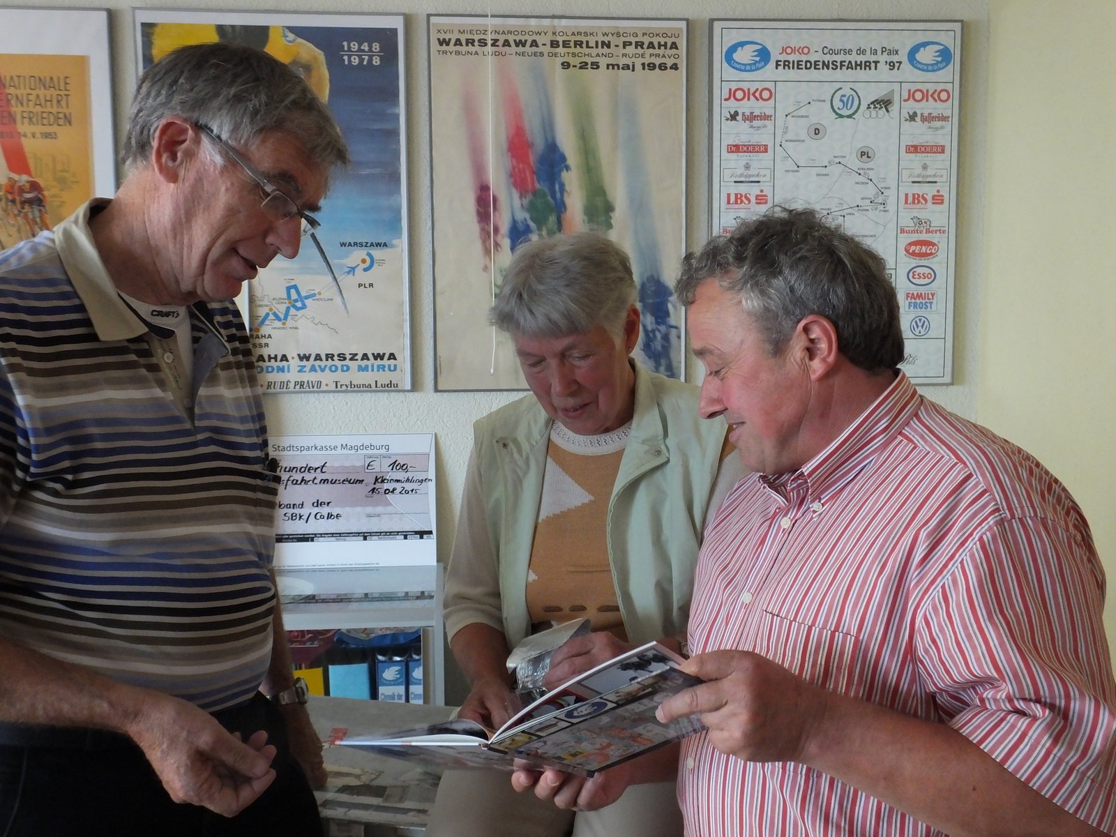 Info zur Massagebank: Be Huizing war viele, viele Jahre Physiotherapeut der niederländischen Radrennfahrer und massierte die Sportler auf einer Massagebank. Jetzt hat er sich zur Ruhe gesetzt und benötigt die Massagebank nicht mehr. Da er genau Buch geführt hat, kann er eidesstattlich versichern (alles in einem vorliegendem Fotobuch festgehalten), dass bis zum 5. September 2015, neunundvierzig (49) Weltmeister auf dieser Massagebank lagen. Nachdem Elisabeth Eichholz nun am 5. September 2015 als 50. Weltmeisterin auf der Massagebank saß, übergab Be Huizing diese Massagebank dem Radsportmuseum. Das Kapitel der Massagebank ist damit abgeschlossen und sie kann ab sofort, mit beiliegendem Fotobuch im Museum betrachtet werden. Die Bilder der 50 Weltmeister-innen werden jetzt digital aufbereitet und laufen dann als Endlosschleife in einem digitalen Bilderrahmen… und hier möchten wir wieder an den Gedanken und Anliegen der Friedensfahrt erinnern, dass Sport Völker verbindet. Denn bestimmt gibt es auch in den Niederlanden die Möglichkeit, die Massagebank und ihre Geschichte zu zeigen …. – aber nein sie steht jetzt im Friedensfahrt Museum. Im Übrigen erhielt Be Huizing diese Massagebank aus Norwegen