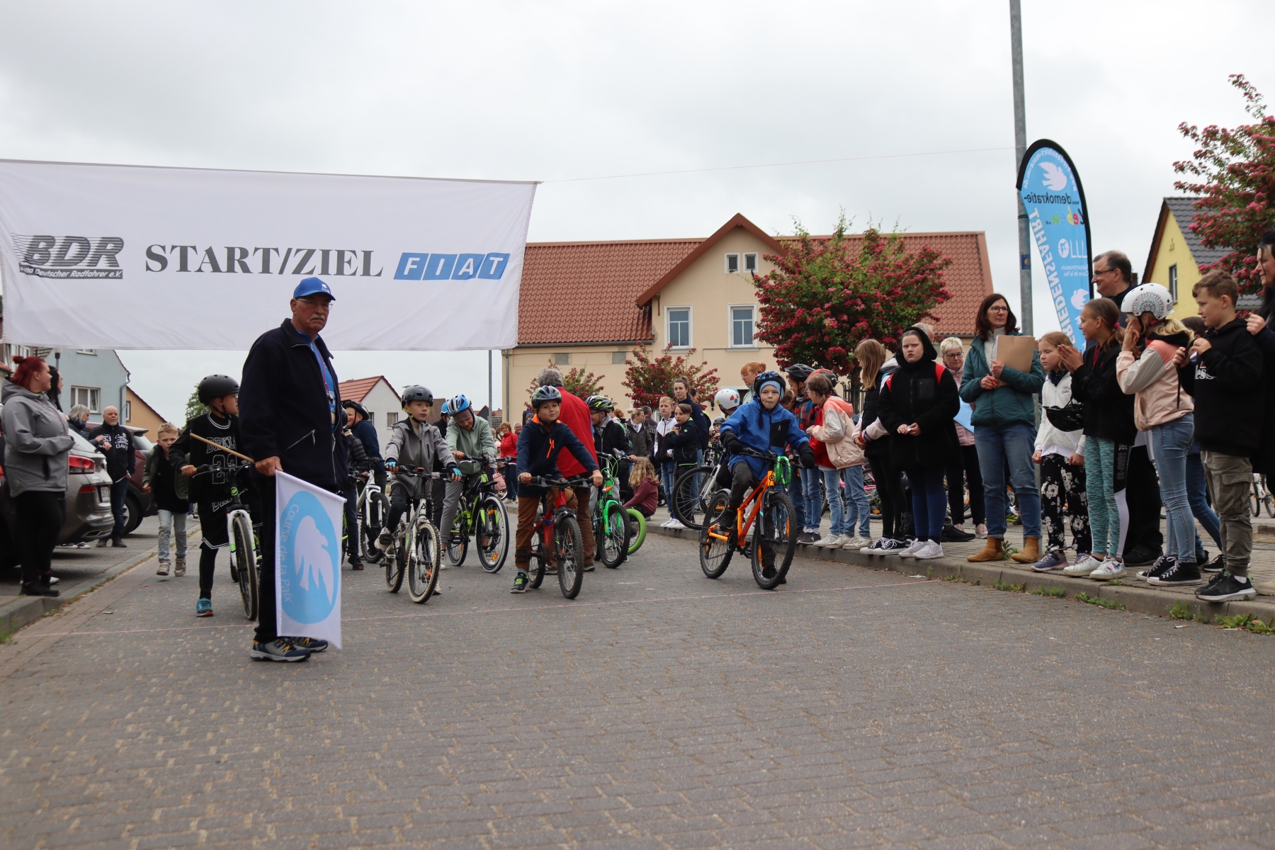 Am 22. Mai war großer Bahnhof in Kleinmühlingen. Horst Schäfer, seines Zeichens „Museumsdirektor“ der Radsportmuseum wurde 70 Jahre alt. Viele Gäste aus nah und fern waren zur Gratulation erschienen und brachten Blumengrüße und Geschenke. Das schönste Geschenk allerdings erhielt Schäfer am Dienstag in Großmühlingen. An diesem Tag wurde mit allen Schülerinnen und Schülern eine Kleine Friedensfahrt durchgeführt. Vom Lehrerkollektiv der Grundschule „Friedrich Loose“ in Großmühlingen wurde eine radsportliche Veranstaltung durchgeführt, die ihresgleichen im Salzlandkreis erst einmal gesucht werden muss. 92 Kinder stellten sich dem Starter Jürgen A.Schulz vom Friedensfahrtmuseum und kämpften wie ehemals die großen Friedensfahrer verbissen um Meter und Sekunden. Ja selbst die Kindergartenkinder aus der Gemeinde gingen mit ihren Fahrrädern an den Start. Nach sehr einfühlsamen Worten zur Eröffnung der Veranstaltung durch den Direktor der Grundschule, Herrn Frank Schiwek, sangen die Kinder erst das „Bördelandlied“ und danach auch noch das Lied von der kleinen weißen Friedenstaube. Nach dieser sehr zu Herzen gehenden Eröffnung, ging es dann auf der Rennstrecke richtig los. Getragen vom Anfeuerungsgeschrei der vielen Zuschauer glühten die Ketten und Fahrradreifen. Alle Kinder erreichten unfallfrei und ohne die berühmte „Defekthexe“ wohlbehalten die Ziellinie. Abgesehen von einem kleinen Pflaster auf einem Knie und einer herunter gesprungenen Kette, war es eine schadensfreie Radsportveranstaltung. Die Sieger und die Platzierten der einzelnen Klassenstufen erhielten dann auf dem Siegertreppchen ein gelbes Trikot, eine Medaille und eine Urkunde. Ganz zum Schluss der Veranstaltung gab es noch für alle Teilnehmer des Wettkampfes ein große Überraschung. Herr Tarek Aboul Zahab und sein Bruder Talal, waren ebenfalls Teilnehmer der Veranstaltung. Tarek war der einzige Libanese, der die große Friedensfahrt in den sechziger Jahren mehrfach mitgefahren ist. Heute sind er und sein Bruder schon über Achtzig und jedes Jahr kommen die „älteren Männer“ aus Beirut und Hambach zum Treff der ehemaligen Friedensfahrer nach Kleinmühlingen. Tarek bring dabei auch immer ein Kinderfahrrad mit und dieses Rad wurde dann verlost. In diesem Jahr durfte sich Nick Köhler über das wunderbare Geschenk freuen und fand vor Erstaunen fast keine Worte. Aber auch die Gemeindeverwaltung hatte trotz klammer Kassen einen schönen Roller gespendet und vom Friedensfahrtmuseum gab es dann auch noch einen neuen Fahrradhelm zu gewinnen. Die drei glücklichen Gewinner der Glücklose waren anschließend wie aus dem Häuschen. Gegen Mittag ging dann in Großmühlingen ein schöner Tag zu Ende. Danke auch hier nochmal an die Kameradinnen und Kameraden der freiwilligen Feuerwehr und dem Deutschen Roten Kreuz, die vorbildlich für Ordnung und Sicherheit bei der Veranstaltung gesorgt haben. Auf ein Neues im nächsten Jahr.
