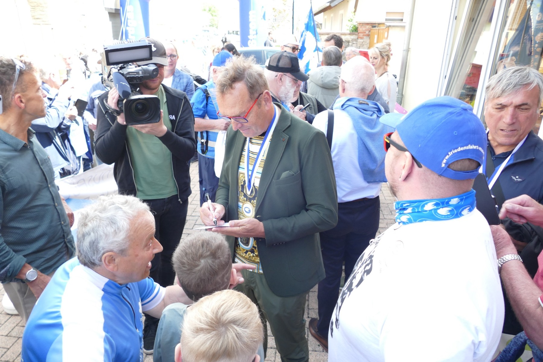 Im Friedensfahrtmuseum wird zum sogenannten „Männertag“ an die zwischen 1948 und 2006 ausgetragene Internationale Friedensfahrt „Course de la Paix“ erinnert. In diesem Jahr waren Gäste aus neun Ländern anwesend. Ich habe mich über ihr Ständchen am letzten Mittwoch sehr gefreut.