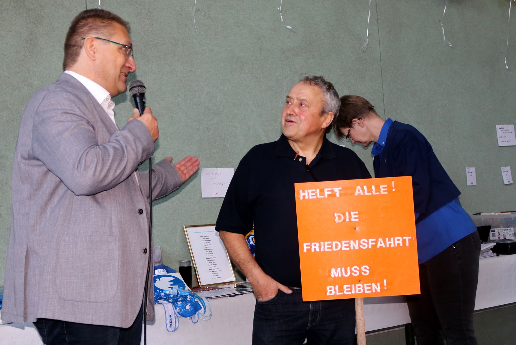 Es ging hoch her am Samstag den 26.November 2022 im Sportzentrum in Kleinmühlingen, denn das Radsportmuseum „Cours de la Paix“ hatte anlässlich des  fünfzehnjährjgen  Bestehens zu einer Geburtstagsparty geladen. Schäfer hatte eingeladen und alle kamen. Rund 200 Gäste aus nah und fern ließen es sich nicht nehmen, mit Blumen und Geschenken, dem Museum seine Referenz zu erweisen. Im Mittelpunkt dieser Veranstaltung standen aber diesmal nicht die ehemaligen „Giganten der Landstraßen,“ sondern durch den Leiter des Museums Horts Schäfer, wurden mit herzlichen Worten,  die Bauleute und freiwilligen Helfer geehrt, die durch ihre fleißige Arbeit vor 15 Jahren zum Entstehen dieses Hauses beigetragen haben. Auch die vielen Unterstützer ,die durch Spenden beigetragen haben, dass der Traum vom Museum Realität geworden ist, wurden mit herzlichen Worten bedacht. Sie alle standen am Sonnabend im Mittelpunkt. Zahlreiche Persönlichkeiten aus Politik und Wirtschaft, Abordnungen aus der Welt des Radsportes und wahre Freunde des Museums, gratulierten dem Museumsverein und wünschten für die Zukunft immer ein volles Haus und noch viele Besucher. Natürlich war auch der Altmeister der Pedalen, Gustav -Adolf (Täve) Schur mit von der Partie und auch Tarek Aboul Zahab aus Beirut (Libanon) war angereist um diesen Tag zu feiern. Musikalisch umrahmt wurde die Geburtstagsfeier durch das Saxophon-Duo Rainer Schulz aus Schönebeck und die Versorgung der vielen Gäste lag wie immer in den Händen der Familie Katte aus Kleinmühlingen. Ein abwechslungsreiches Programm wurde durch den Moderator des Museums, Jürgen A. Schulz geleitet und im Anschluss an die Feier ,besuchten die Gäste in großer Zahl auch noch das Radsportmuseum. Aber, nach dem Spiel, ist vor dem Spiel und Horst Schäfer und seine Truppe macht sich schon wieder Gedanken, wie sie den Himmelsfahrttag 2023 gestalten werden, denn dann stehen die ehemaligen Friedensfahrer im Mittelpunkt der Veranstaltung „75 Jahre Internationale Friedensfahrt“