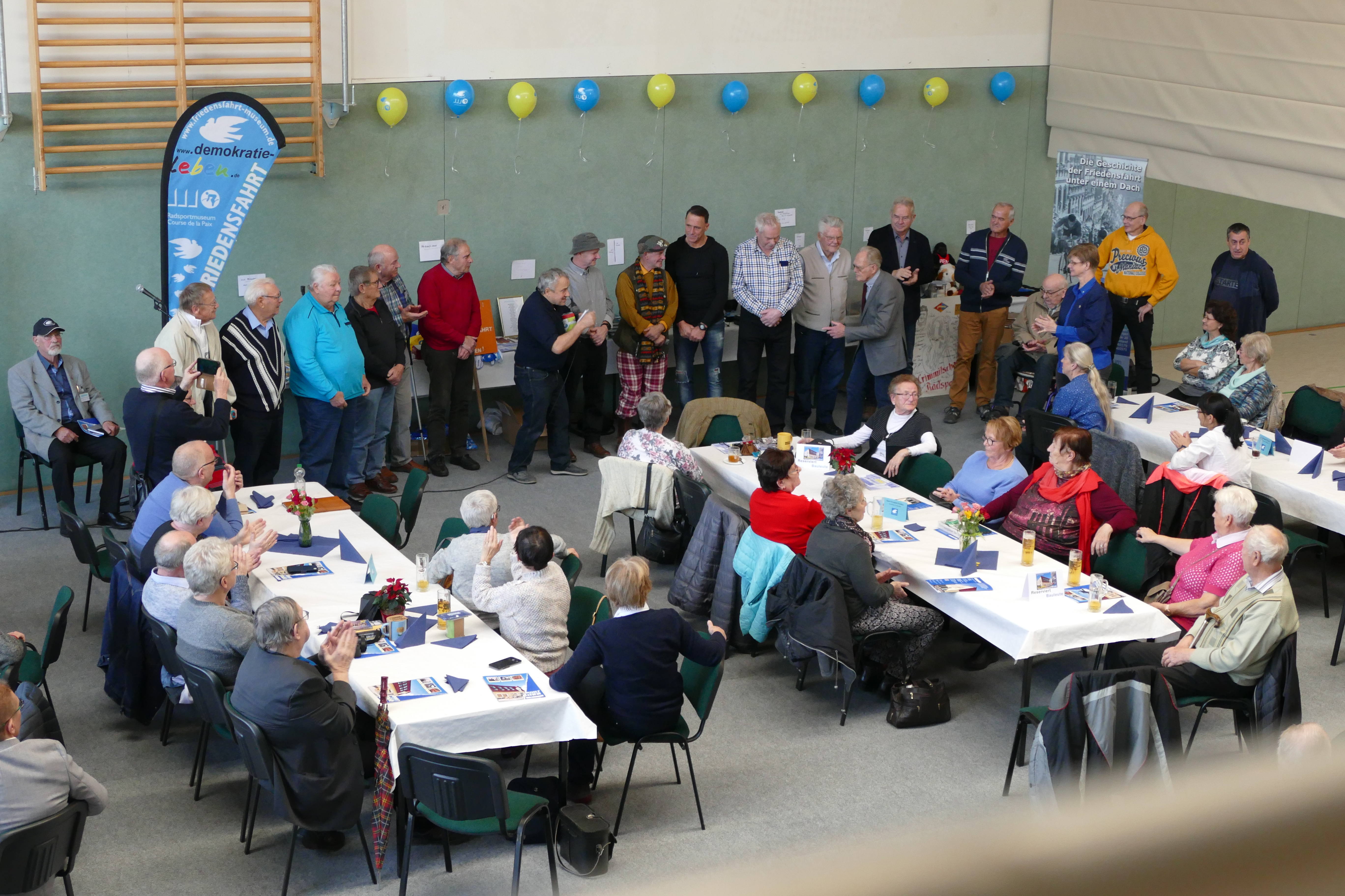 Es ging hoch her am Samstag den 26.November 2022 im Sportzentrum in Kleinmühlingen, denn das Radsportmuseum „Cours de la Paix“ hatte anlässlich des  fünfzehnjährjgen  Bestehens zu einer Geburtstagsparty geladen. Schäfer hatte eingeladen und alle kamen. Rund 200 Gäste aus nah und fern ließen es sich nicht nehmen, mit Blumen und Geschenken, dem Museum seine Referenz zu erweisen. Im Mittelpunkt dieser Veranstaltung standen aber diesmal nicht die ehemaligen „Giganten der Landstraßen,“ sondern durch den Leiter des Museums Horts Schäfer, wurden mit herzlichen Worten,  die Bauleute und freiwilligen Helfer geehrt, die durch ihre fleißige Arbeit vor 15 Jahren zum Entstehen dieses Hauses beigetragen haben. Auch die vielen Unterstützer ,die durch Spenden beigetragen haben, dass der Traum vom Museum Realität geworden ist, wurden mit herzlichen Worten bedacht. Sie alle standen am Sonnabend im Mittelpunkt. Zahlreiche Persönlichkeiten aus Politik und Wirtschaft, Abordnungen aus der Welt des Radsportes und wahre Freunde des Museums, gratulierten dem Museumsverein und wünschten für die Zukunft immer ein volles Haus und noch viele Besucher. Natürlich war auch der Altmeister der Pedalen, Gustav -Adolf (Täve) Schur mit von der Partie und auch Tarek Aboul Zahab aus Beirut (Libanon) war angereist um diesen Tag zu feiern. Musikalisch umrahmt wurde die Geburtstagsfeier durch das Saxophon-Duo Rainer Schulz aus Schönebeck und die Versorgung der vielen Gäste lag wie immer in den Händen der Familie Katte aus Kleinmühlingen. Ein abwechslungsreiches Programm wurde durch den Moderator des Museums, Jürgen A. Schulz geleitet und im Anschluss an die Feier ,besuchten die Gäste in großer Zahl auch noch das Radsportmuseum. Aber, nach dem Spiel, ist vor dem Spiel und Horst Schäfer und seine Truppe macht sich schon wieder Gedanken, wie sie den Himmelsfahrttag 2023 gestalten werden, denn dann stehen die ehemaligen Friedensfahrer im Mittelpunkt der Veranstaltung „75 Jahre Internationale Friedensfahrt“