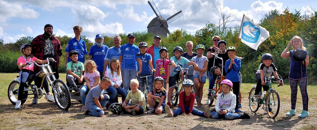 Mit dem Fahrrad ging es für den Lessing-Hort aus Calbe nach Kleinmühlingen zur „Kleinen Friedensfahrt“. Der ehemalige Rennfahrer und Fahrradhändler Tarek Aboul Zahab aus dem Libanon verloste ein Fahrrad unter den Kindern.